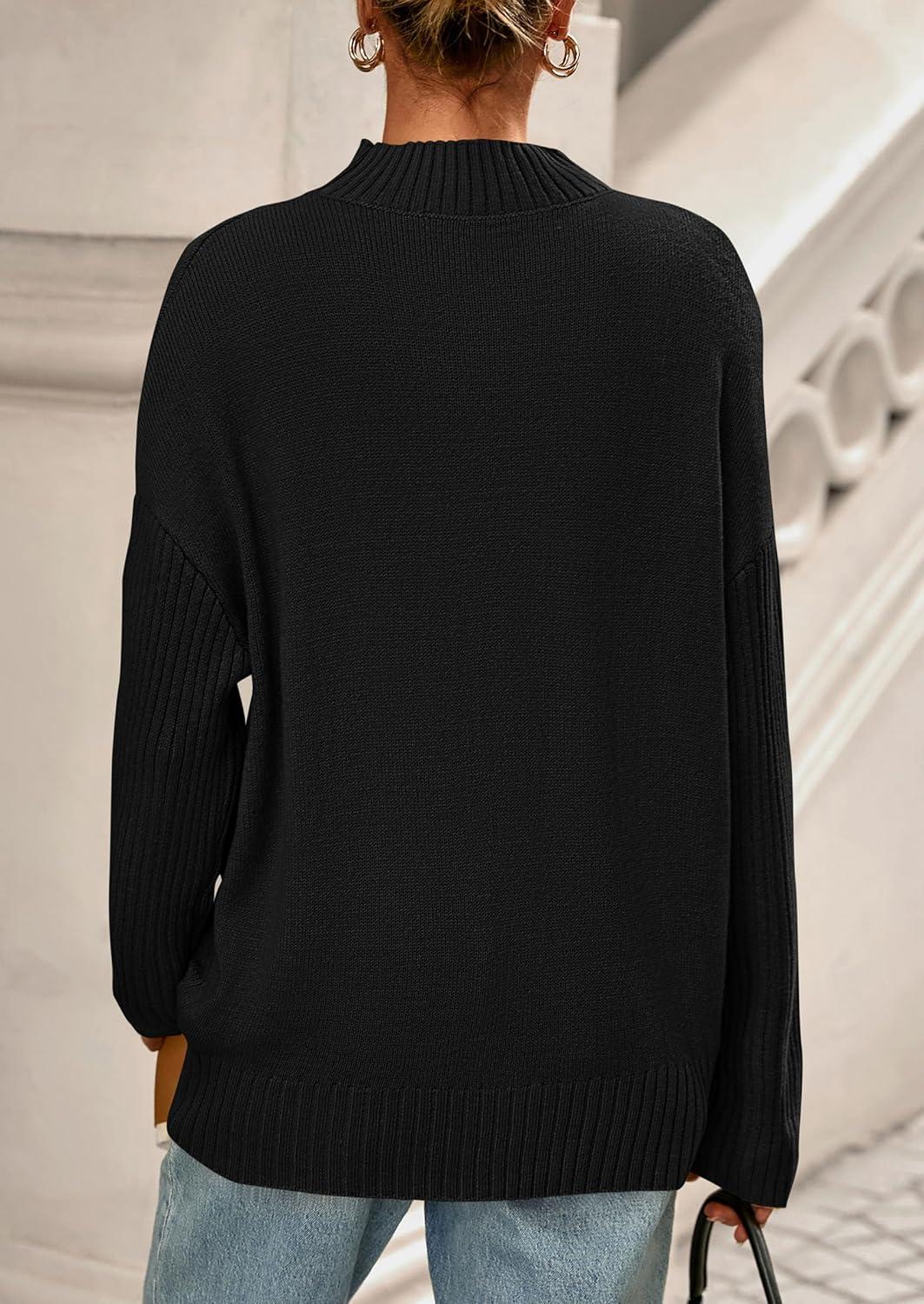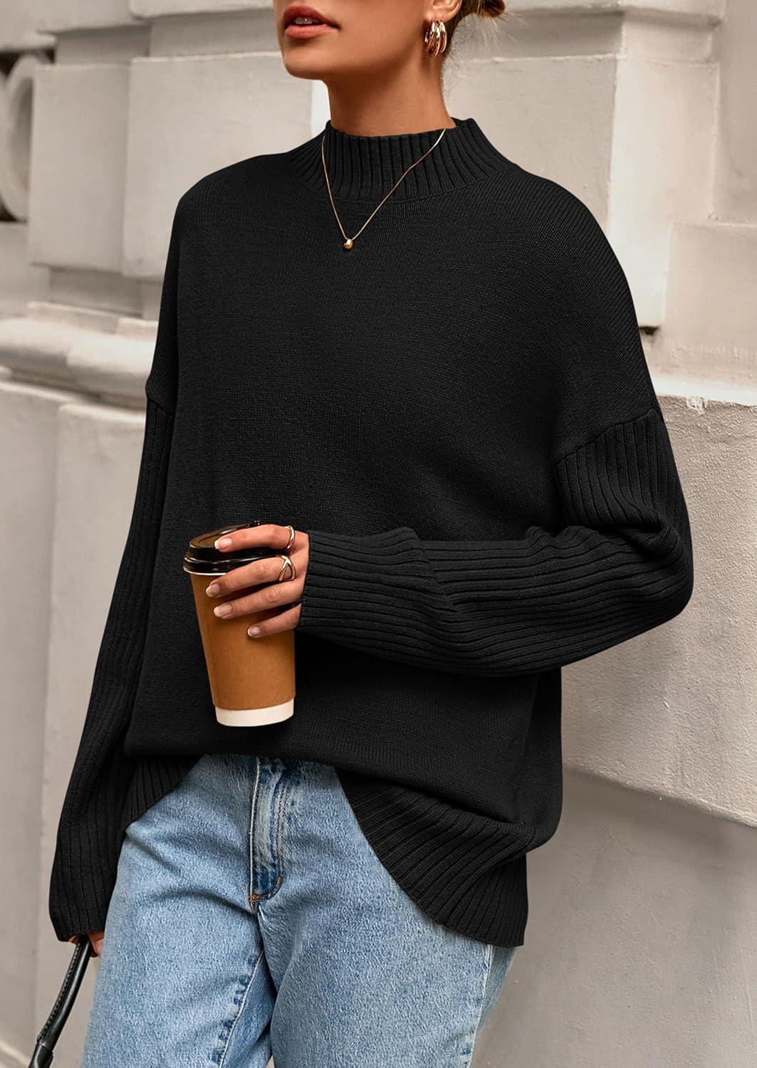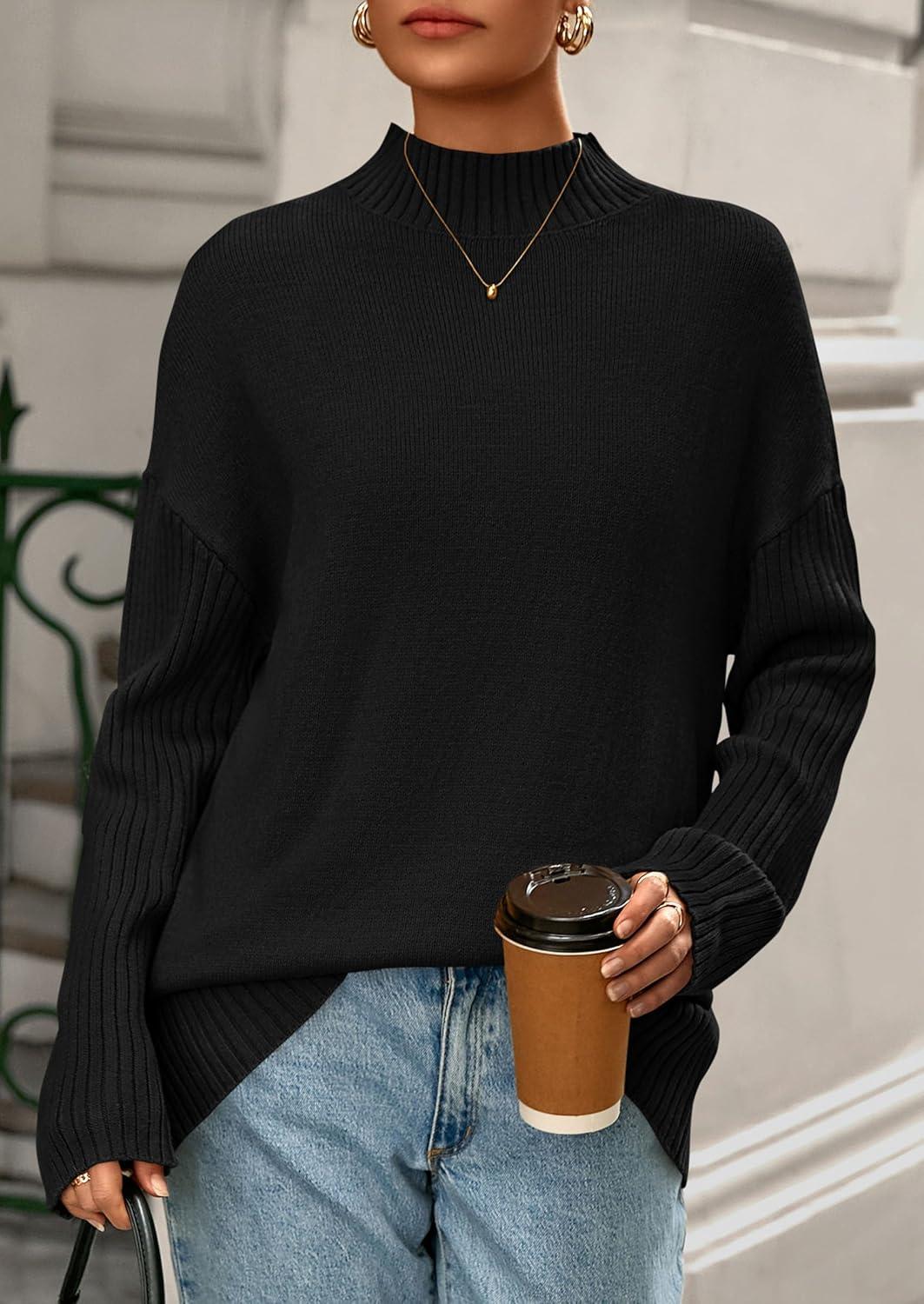 PRETTYGARDEN Casual Long Sleeve Oversized Sweaters for Women 2025 Loose Mock Neck Pullover Sweater Ribbed Knit Fall Clothes(Black)