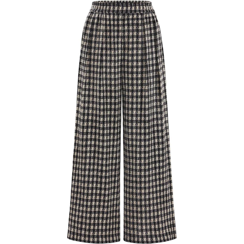PRETTYGARDEN Casual Women's Pants 2025 Elastic Waist Palazzo Long Stretchy Wide Leg Trousers Knit Fall Outfits with Pockets(Plaid Black Apricot)