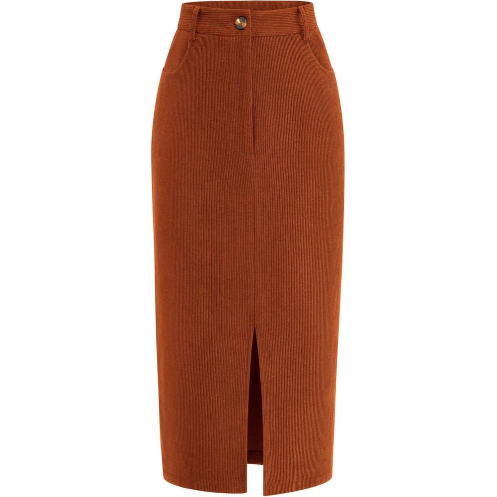 PRETTYGARDEN Corduroy Skirt Women Fall Fashion 2025 High Waisted Pencil Midi Skirts Business Casual Work Office Winter Outfit(Caramel)