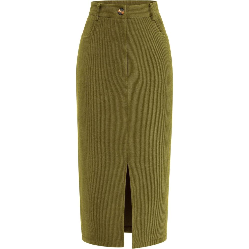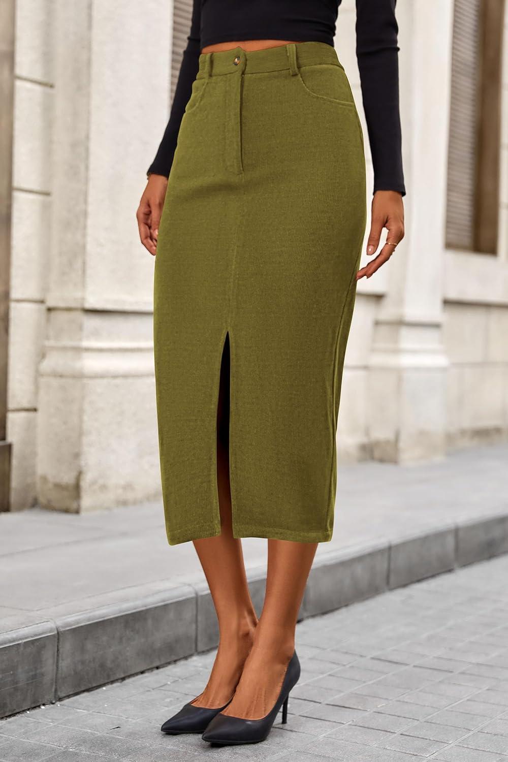 PRETTYGARDEN Corduroy Skirt Women Fall Fashion 2025 High Waisted Pencil Midi Skirts Business Casual Work Office Winter Outfit(Green)