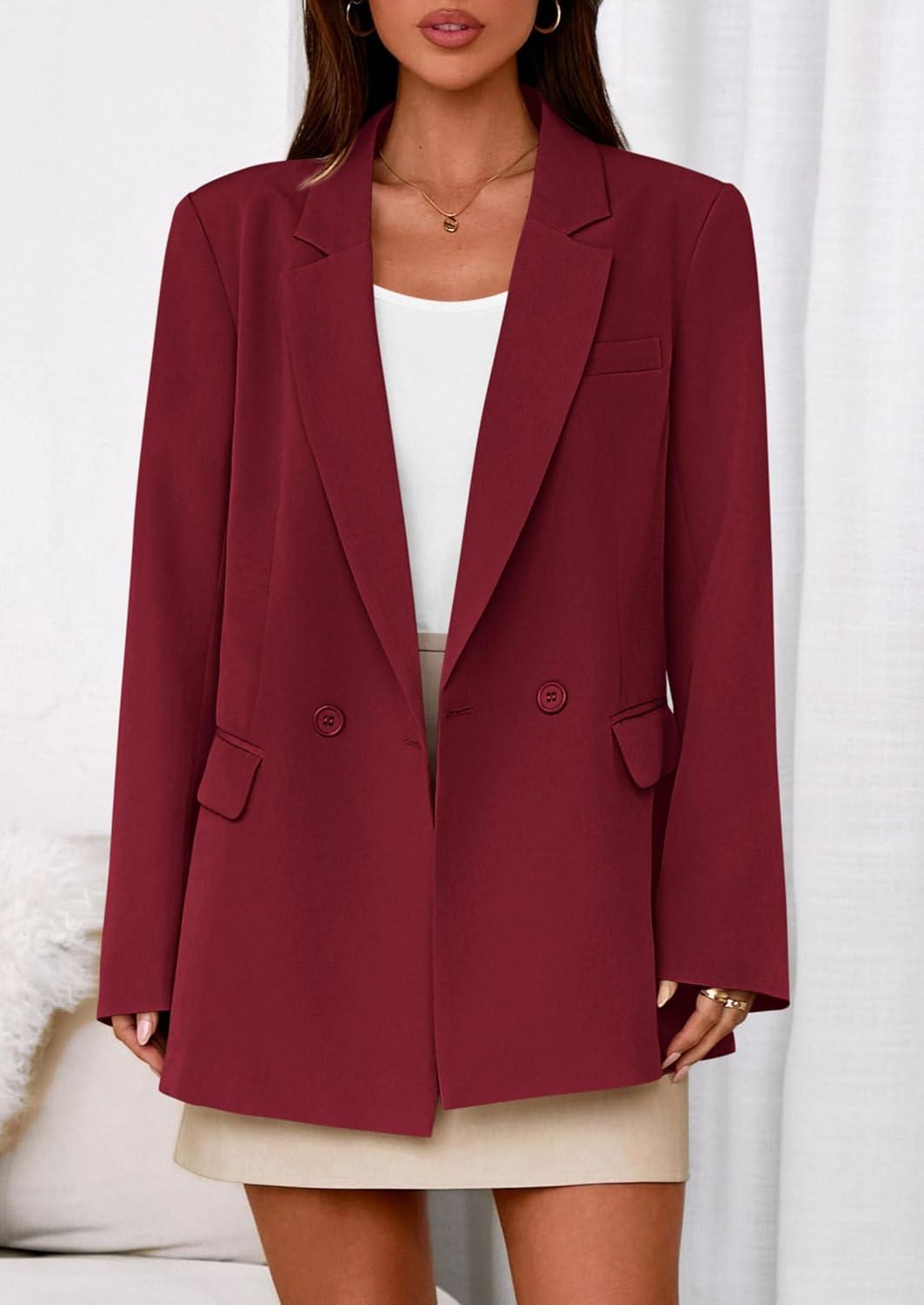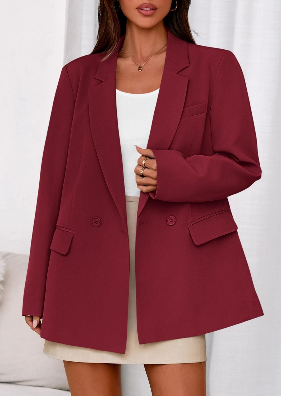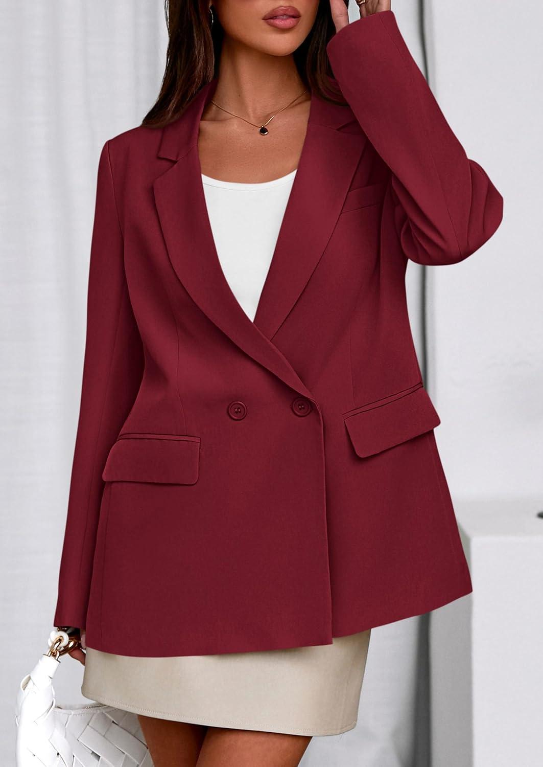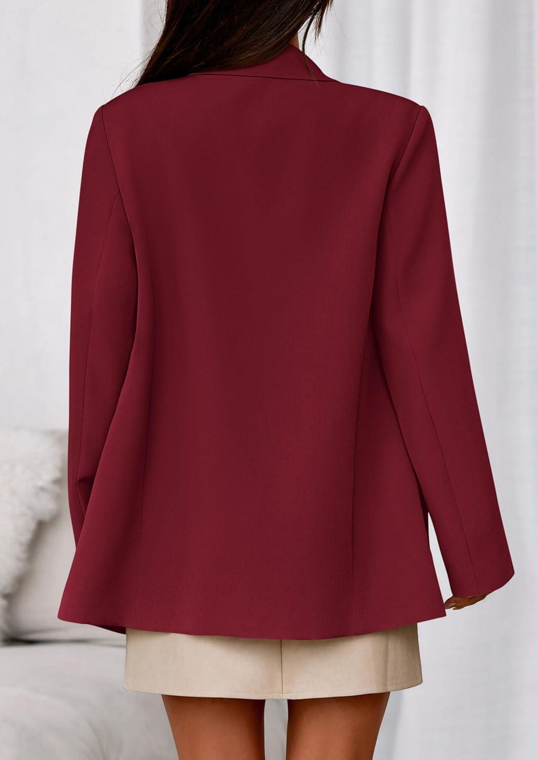 imagePRETTYGARDEN Fall 2025 Blazers for Women Business Casual Long Sleeve Lapel Pockets Dressy Suit Jackets Work Office ClothesBurgundy