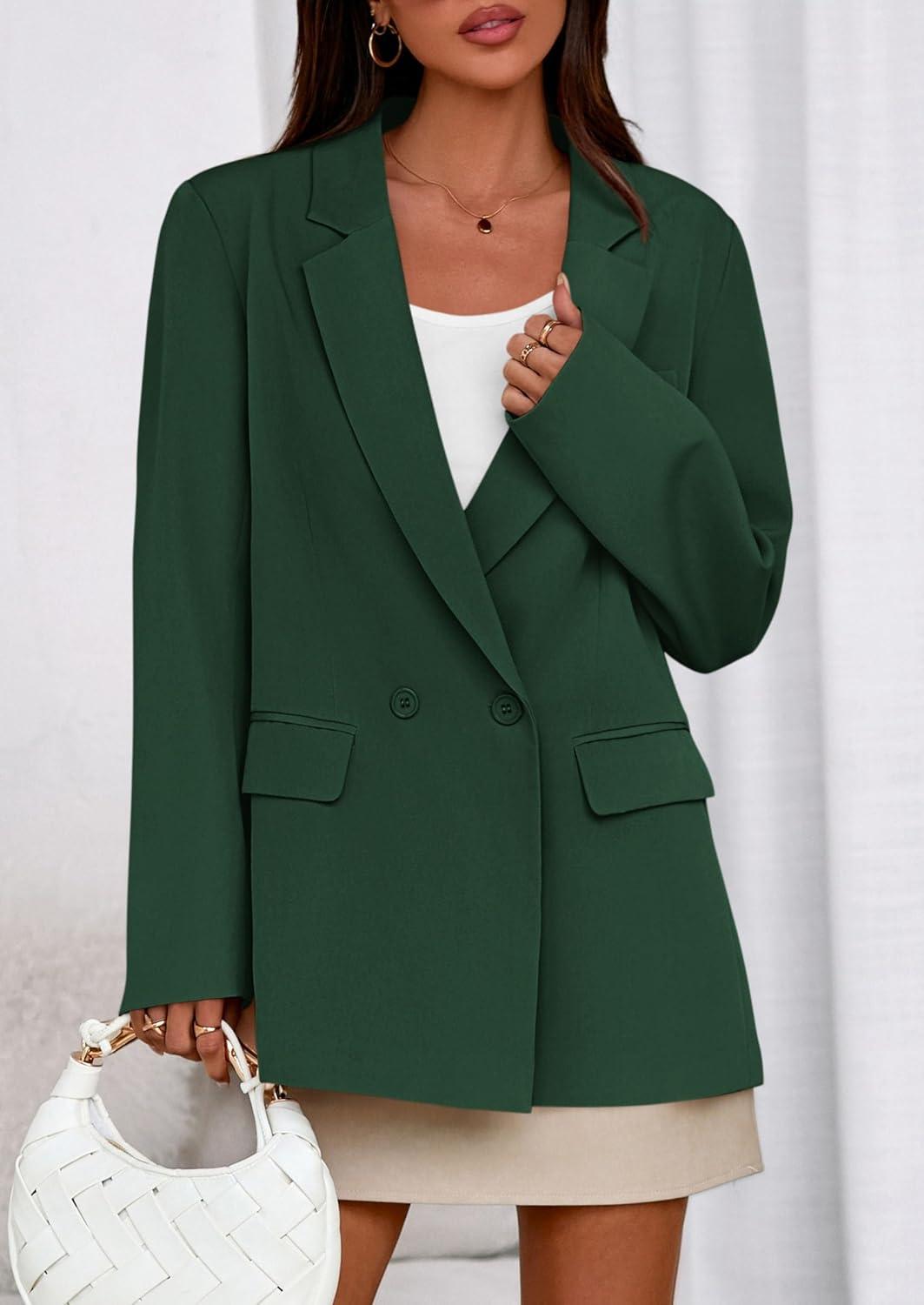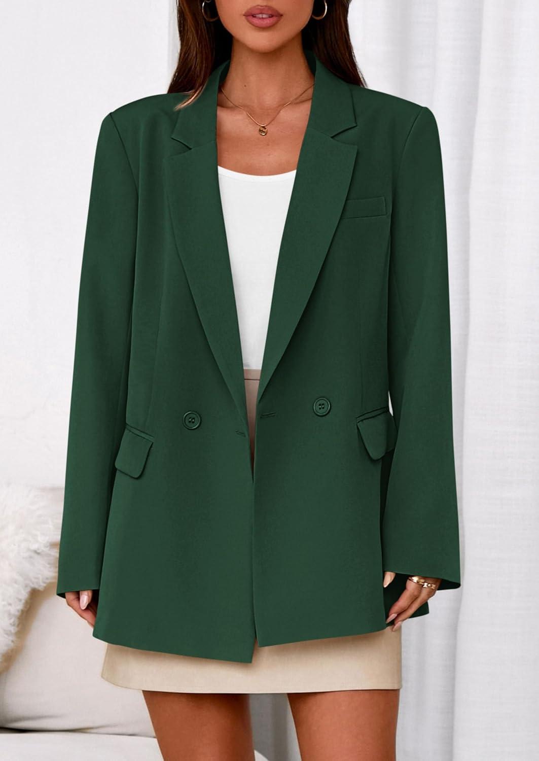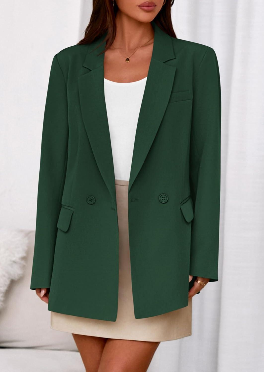 PRETTYGARDEN Fall 2025 Blazers for Women Business Casual Long Sleeve Lapel Pockets Dressy Suit Jackets Work Office Clothes(Dark Green)