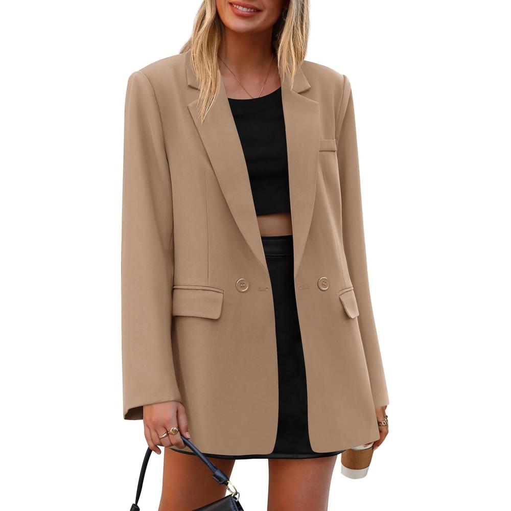 imagePRETTYGARDEN Fall 2025 Blazers for Women Business Casual Long Sleeve Lapel Pockets Dressy Suit Jackets Work Office ClothesKhaki
