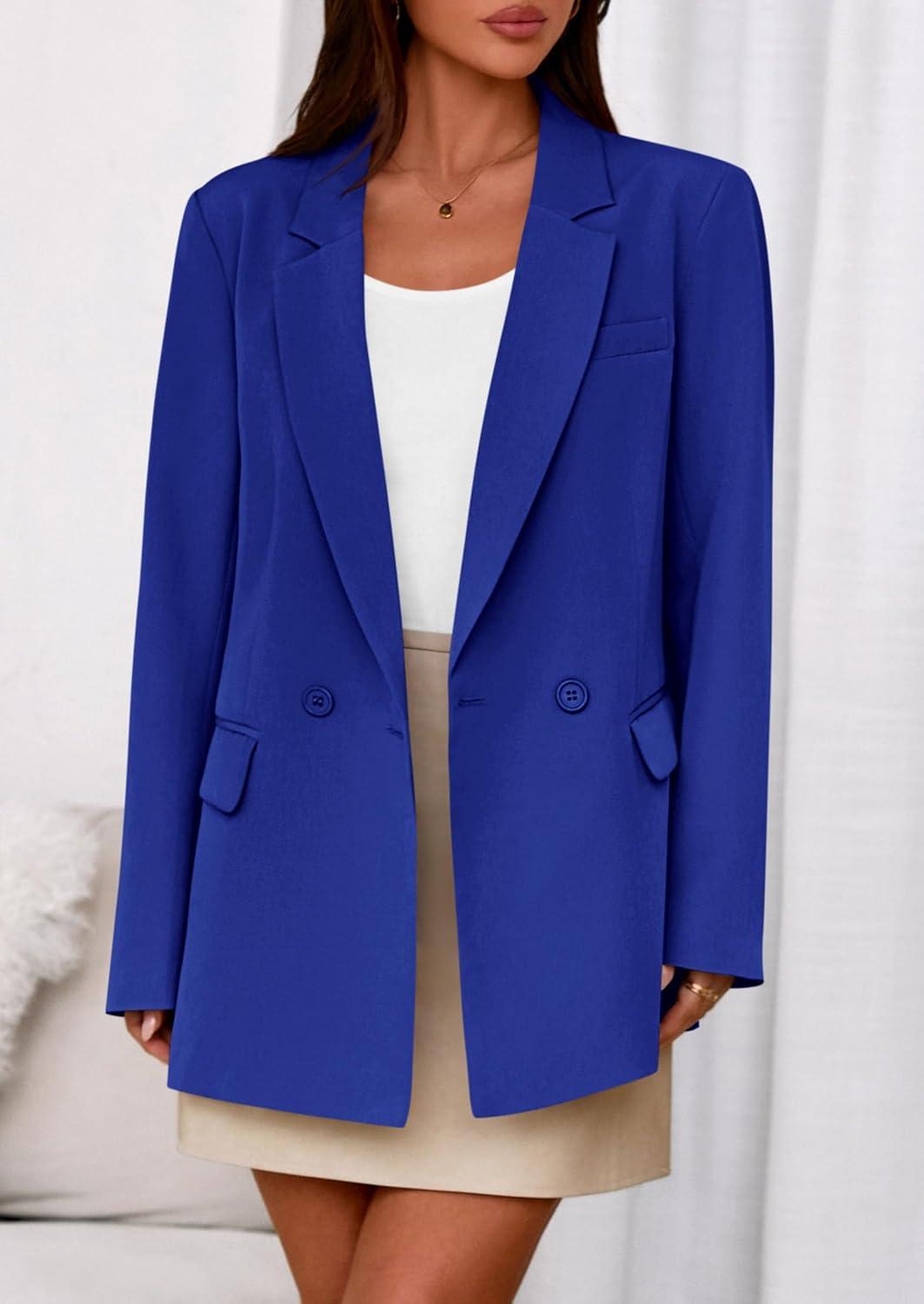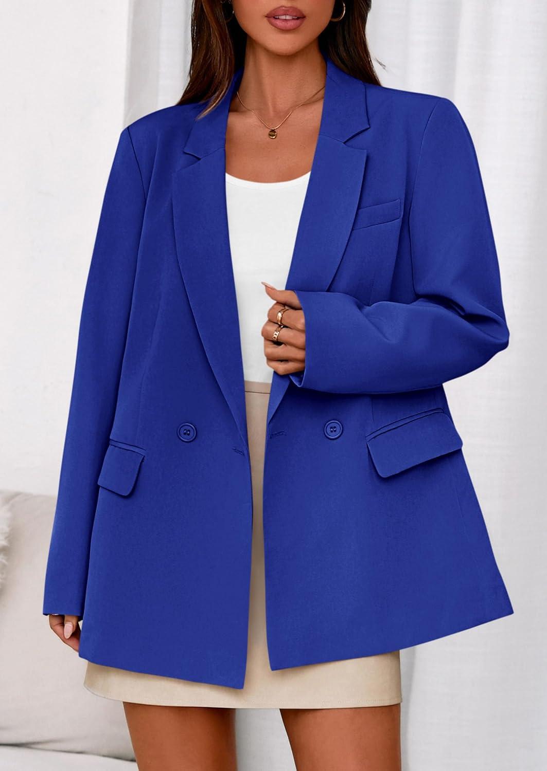 PRETTYGARDEN Fall 2025 Blazers for Women Business Casual Long Sleeve Lapel Pockets Dressy Suit Jackets Work Office Clothes(Royal Blue)