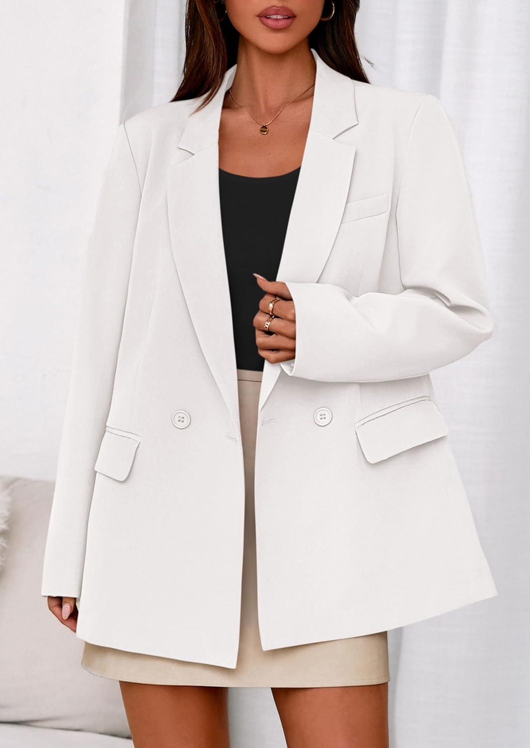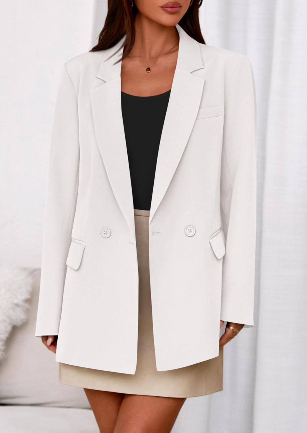 PRETTYGARDEN Fall 2025 Blazers for Women Business Casual Long Sleeve Lapel Pockets Dressy Suit Jackets Work Office Clothes(White)