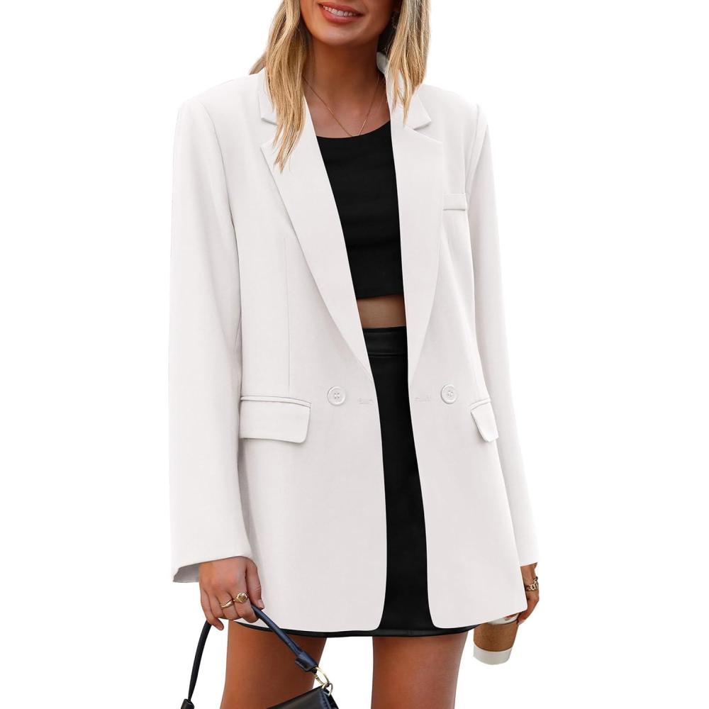 imagePRETTYGARDEN Fall 2025 Blazers for Women Business Casual Long Sleeve Lapel Pockets Dressy Suit Jackets Work Office ClothesWhite