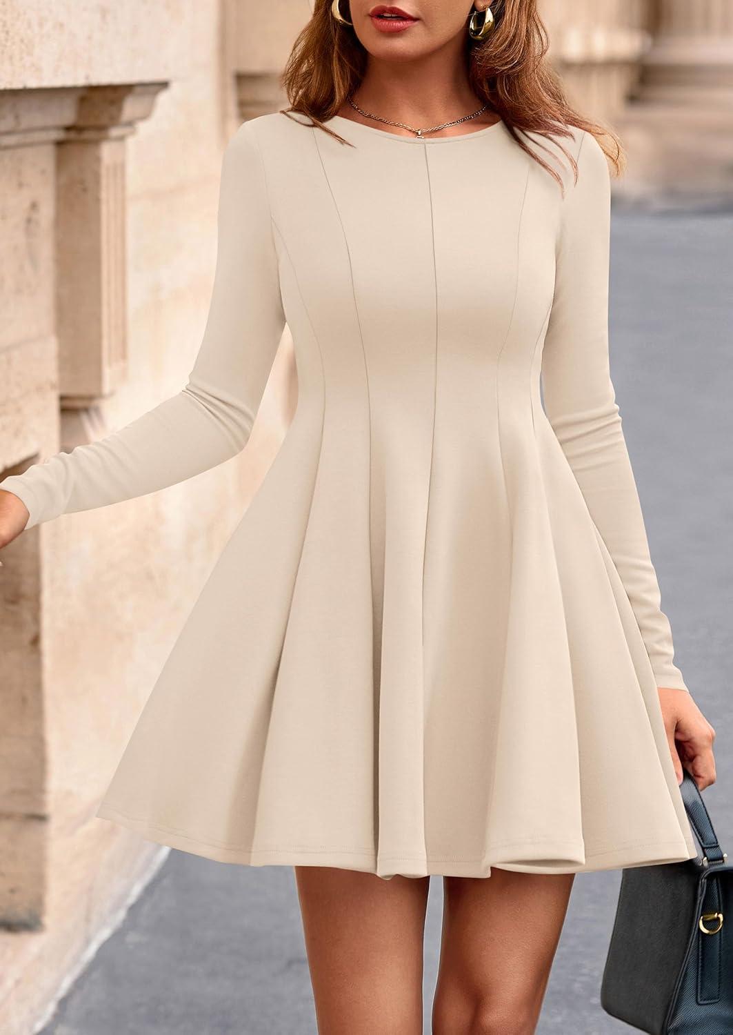PRETTYGARDEN Fall Cocktail Dresses for Women Elegant Classy Wedding Guest 2025 Long Sleeve Homecoming Party A Line Mini Dress(Beige)