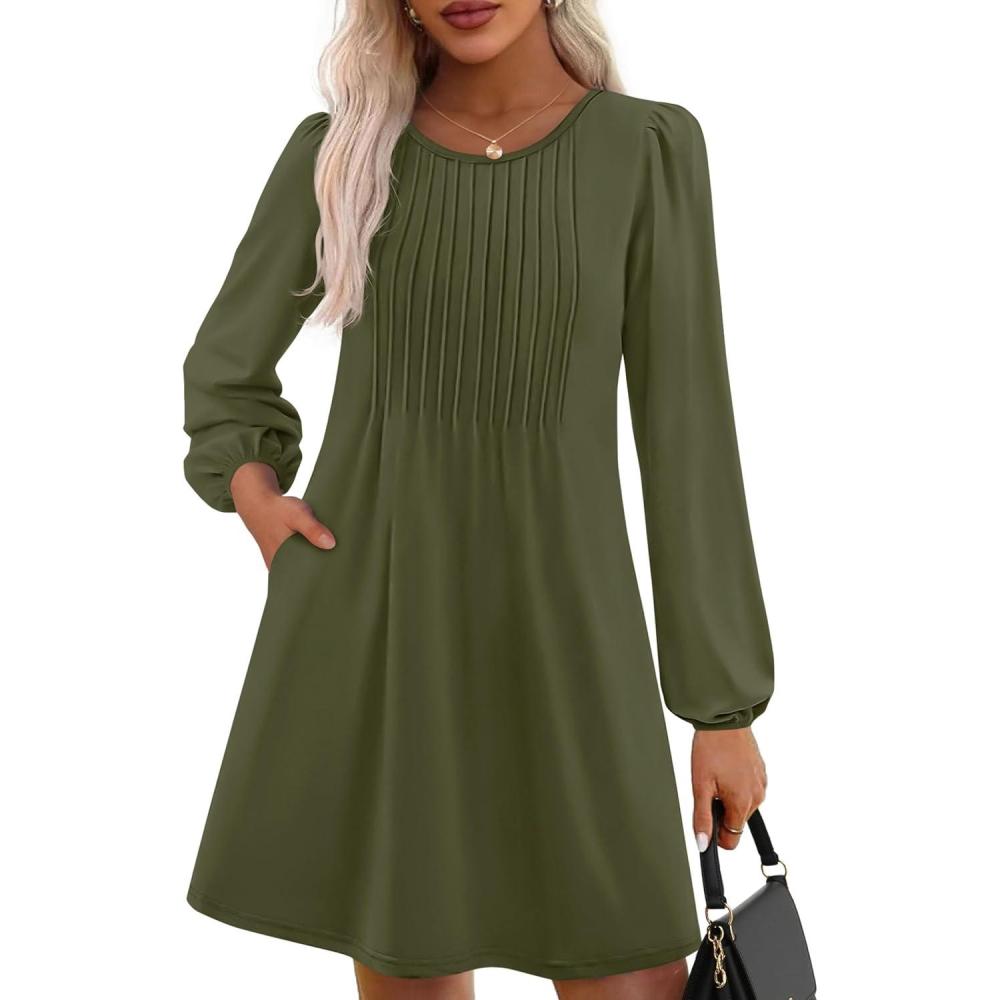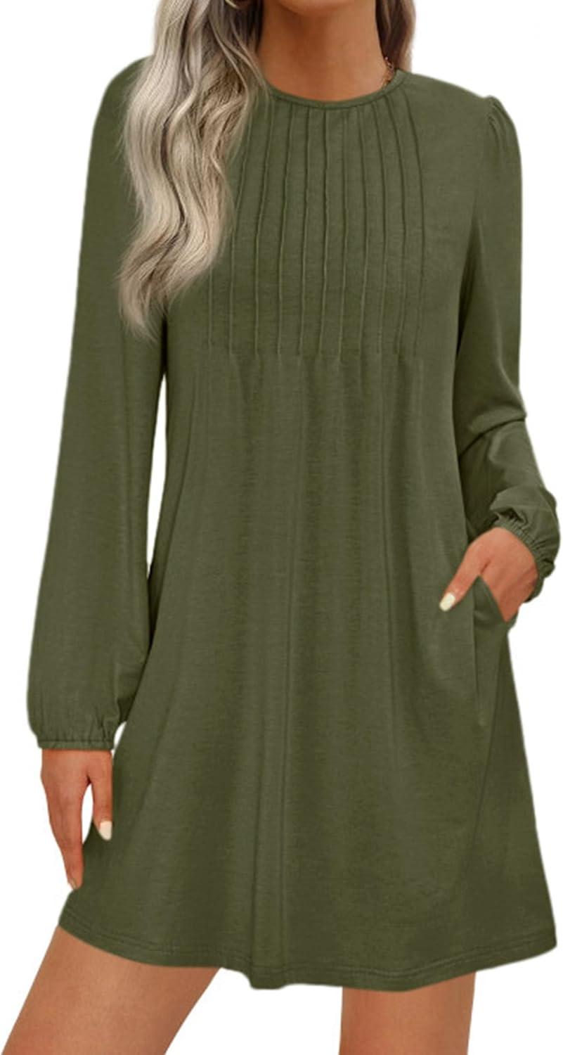 PRETTYGARDEN Fall Dresses for Women 2025 Long Sleeve Mini Short Flowy A Line Casual Holiday Party Tunic Dress Fashion Clothes(Army Green)