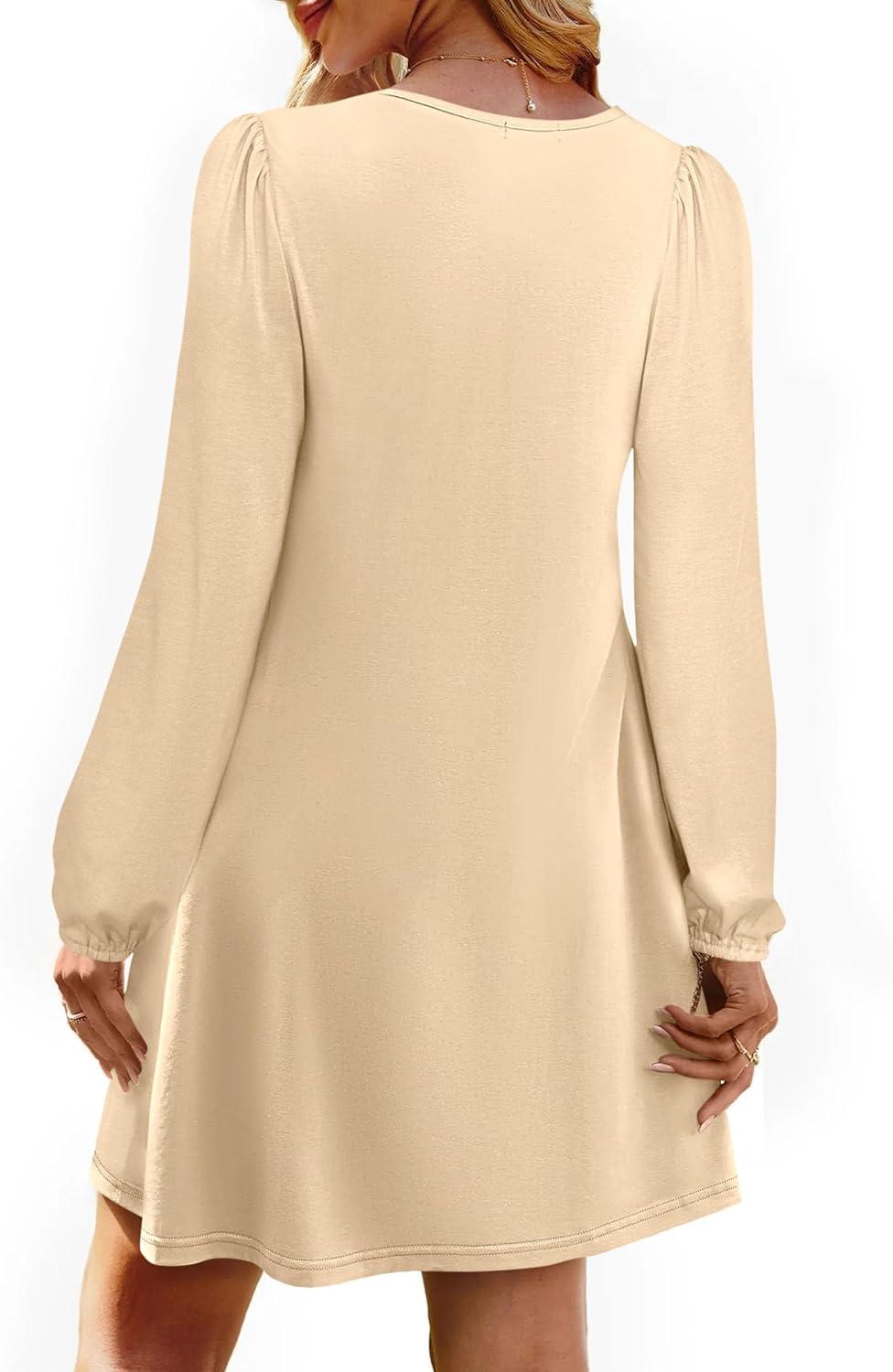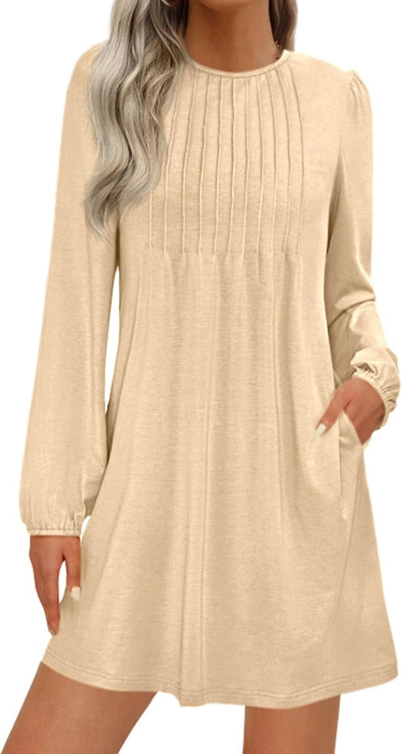 PRETTYGARDEN Fall Dresses for Women 2025 Long Sleeve Mini Short Flowy A Line Casual Holiday Party Tunic Dress Fashion Clothes(Beige)