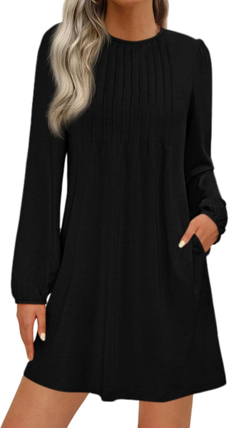 PRETTYGARDEN Fall Dresses for Women 2025 Long Sleeve Mini Short Flowy A Line Casual Holiday Party Tunic Dress Fashion Clothes(Black)
