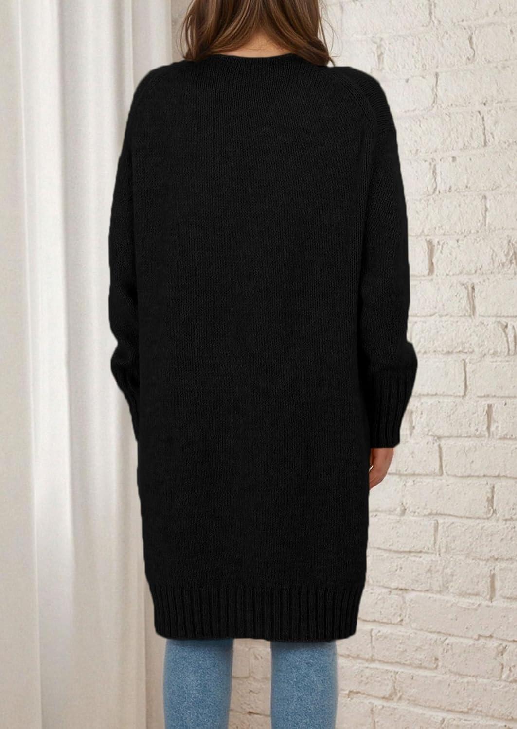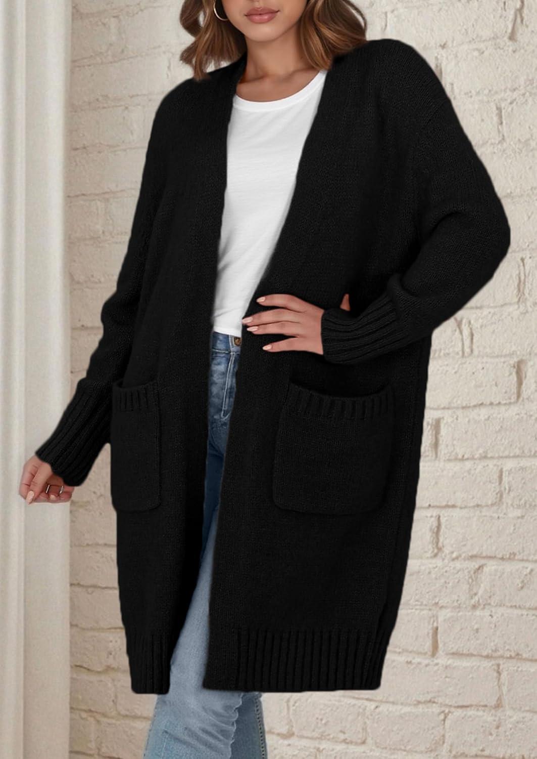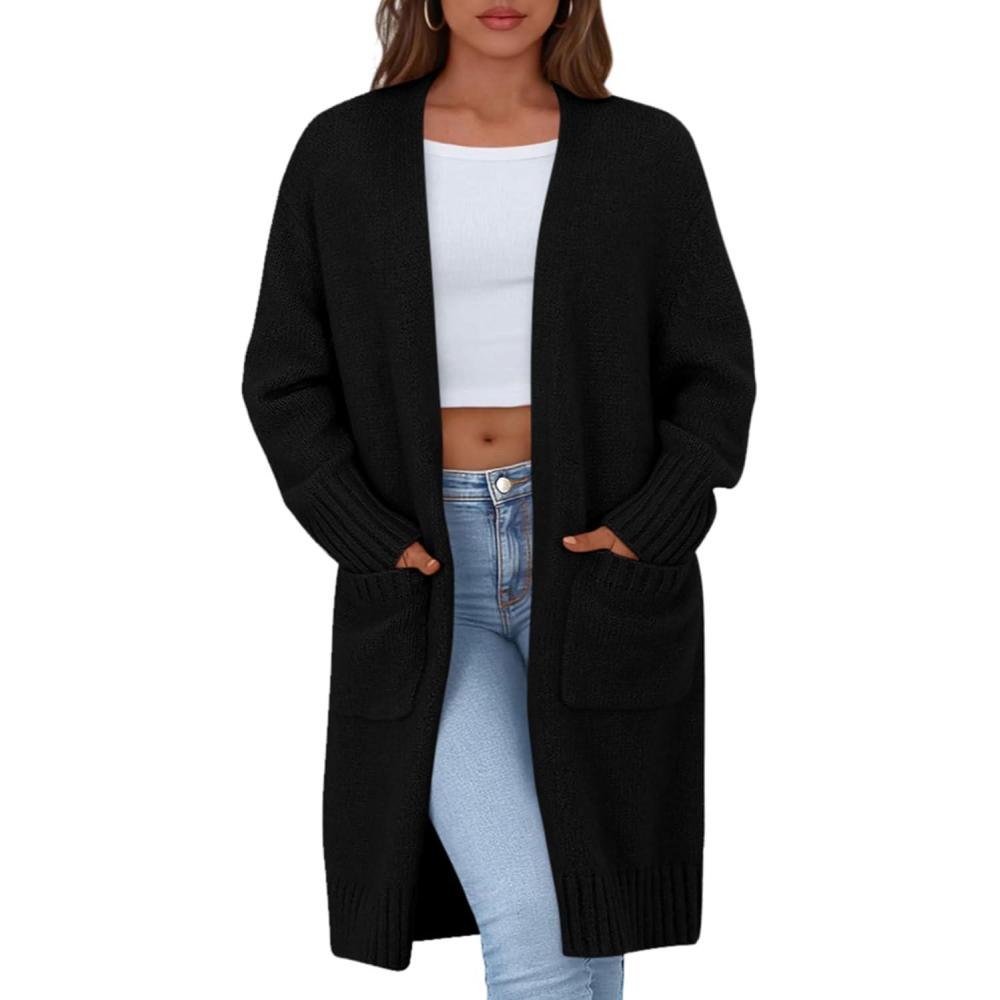 PRETTYGARDEN Fall Long Sleeve Cardigan Sweaters for Women 2025 Trendy Winter Open Front Loose Knitted Cardigans with Pockets(Black)