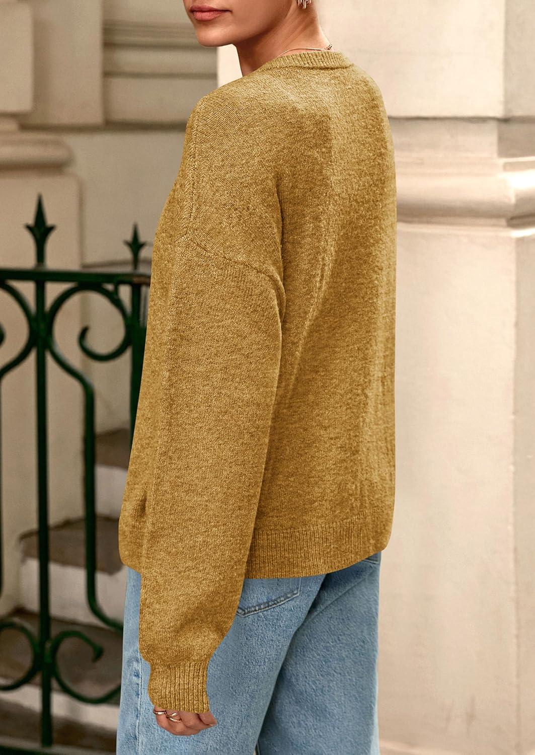 PRETTYGARDEN Fall Long Sleeve Cardigans for Women Trendy 2025 Lightweight Button Down Crewneck Loose Knit Sweater Clothes(Yellow)