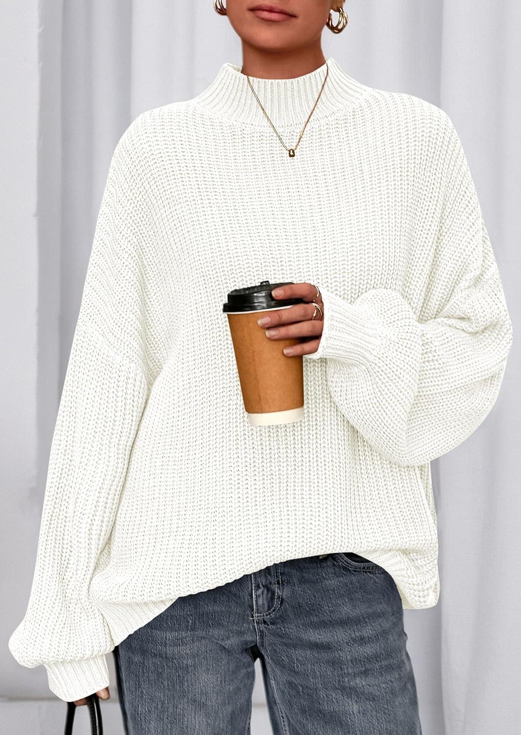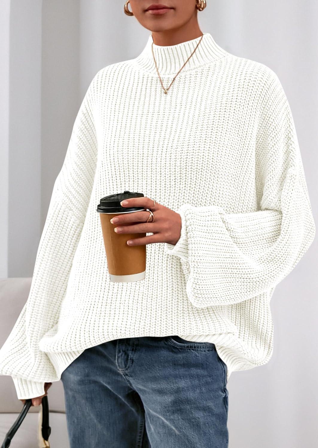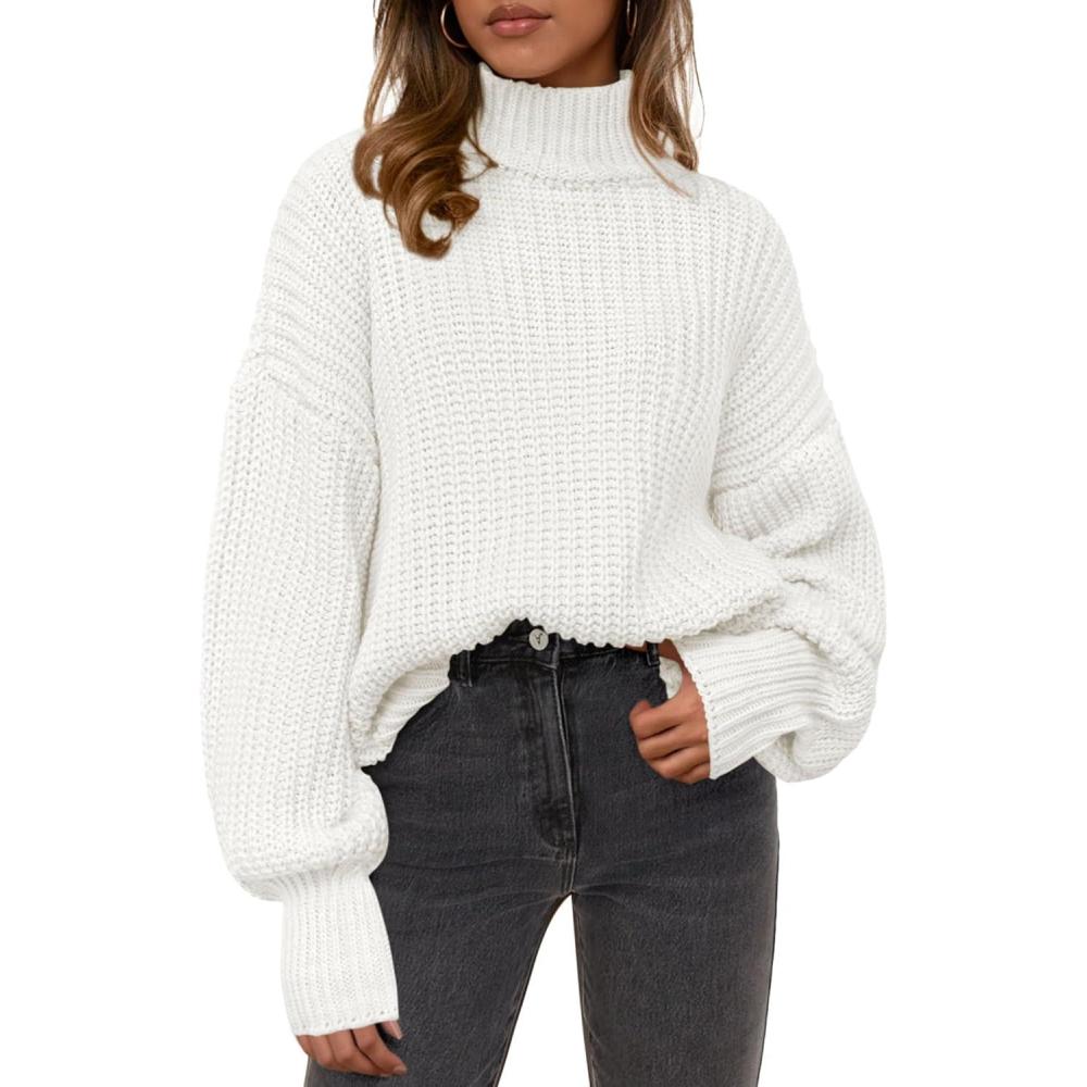 PRETTYGARDEN Fall Oversized Sweaters for Women 2025 Chunky Knit Long Sleeve Turtle Neck Pullover Tops Cozy Winter Clothing(White)