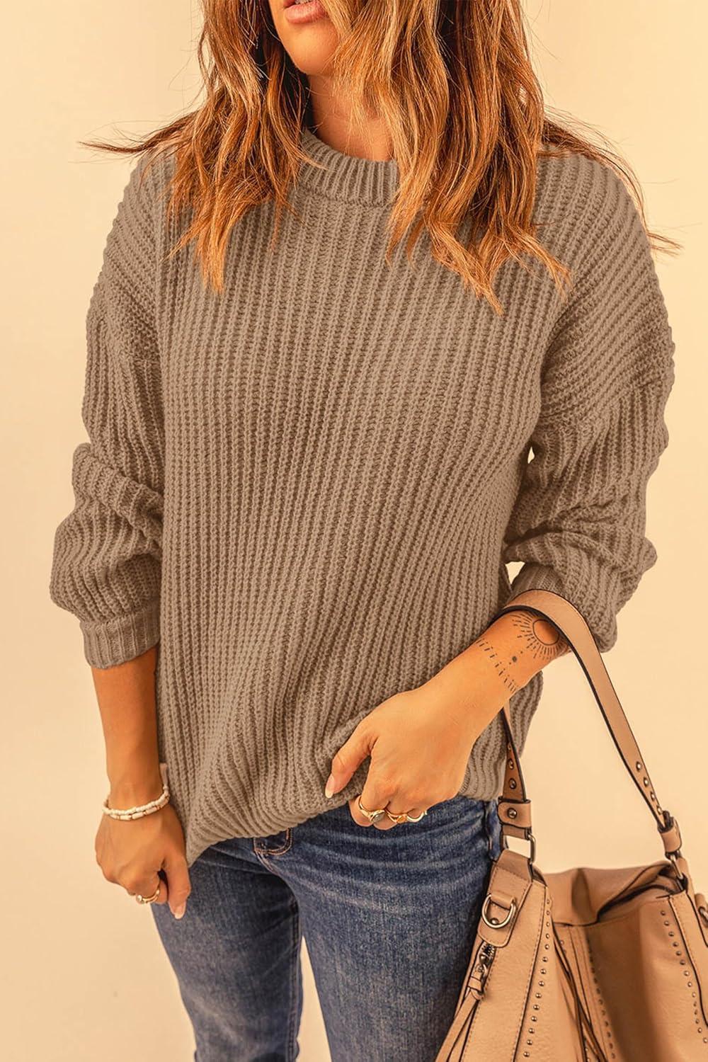 PRETTYGARDEN Fall Sweaters for Women 2025 Fashion Long Sleeve Casual Ribbed Knit Winter Clothes Pullover Jumper Tops(Coffee)