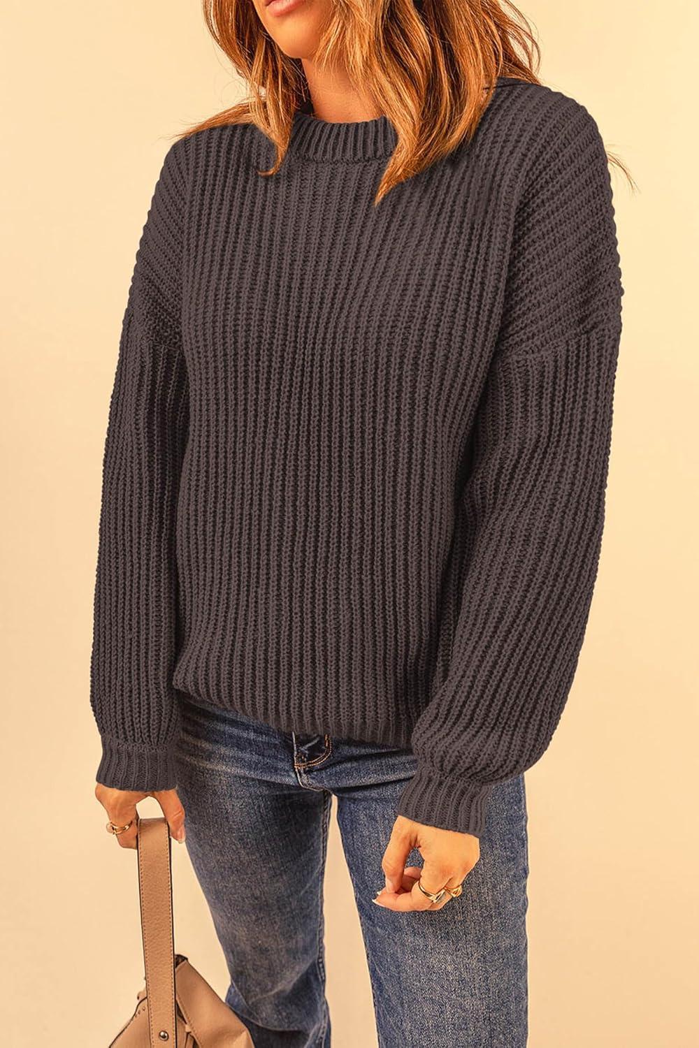 PRETTYGARDEN Fall Sweaters for Women 2025 Fashion Long Sleeve Casual Ribbed Knit Winter Clothes Pullover Jumper Tops(Navy)