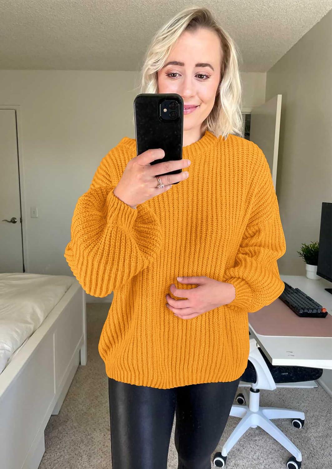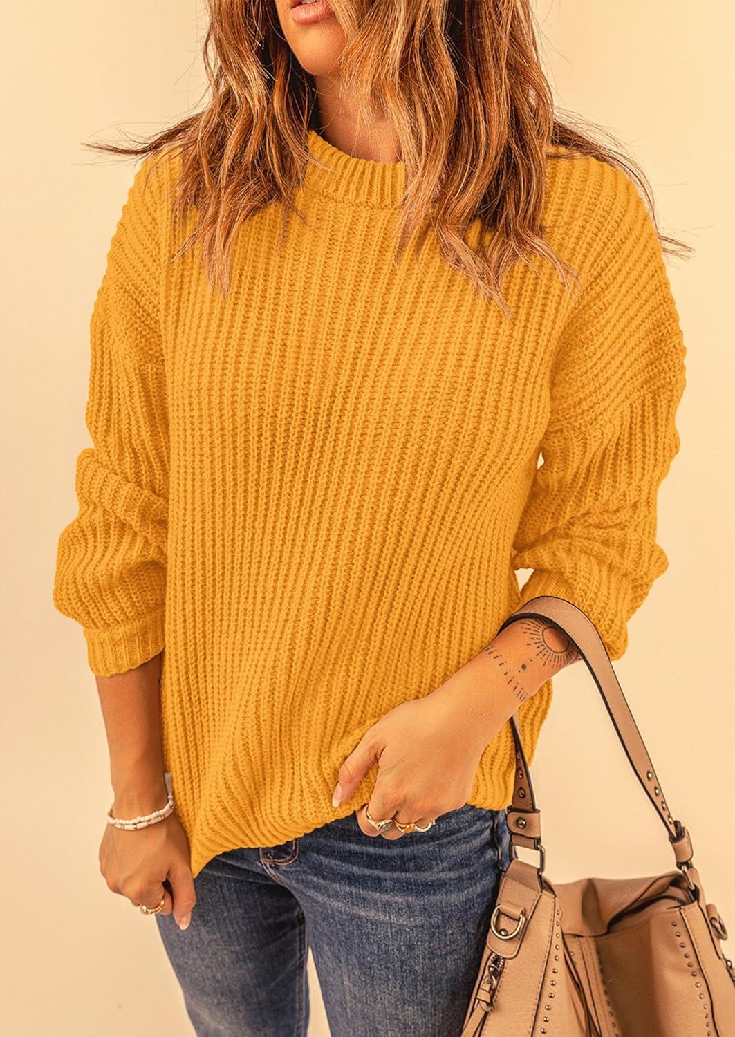 PRETTYGARDEN Fall Sweaters for Women 2025 Fashion Long Sleeve Casual Ribbed Knit Winter Clothes Pullover Jumper Tops(Turmeric)