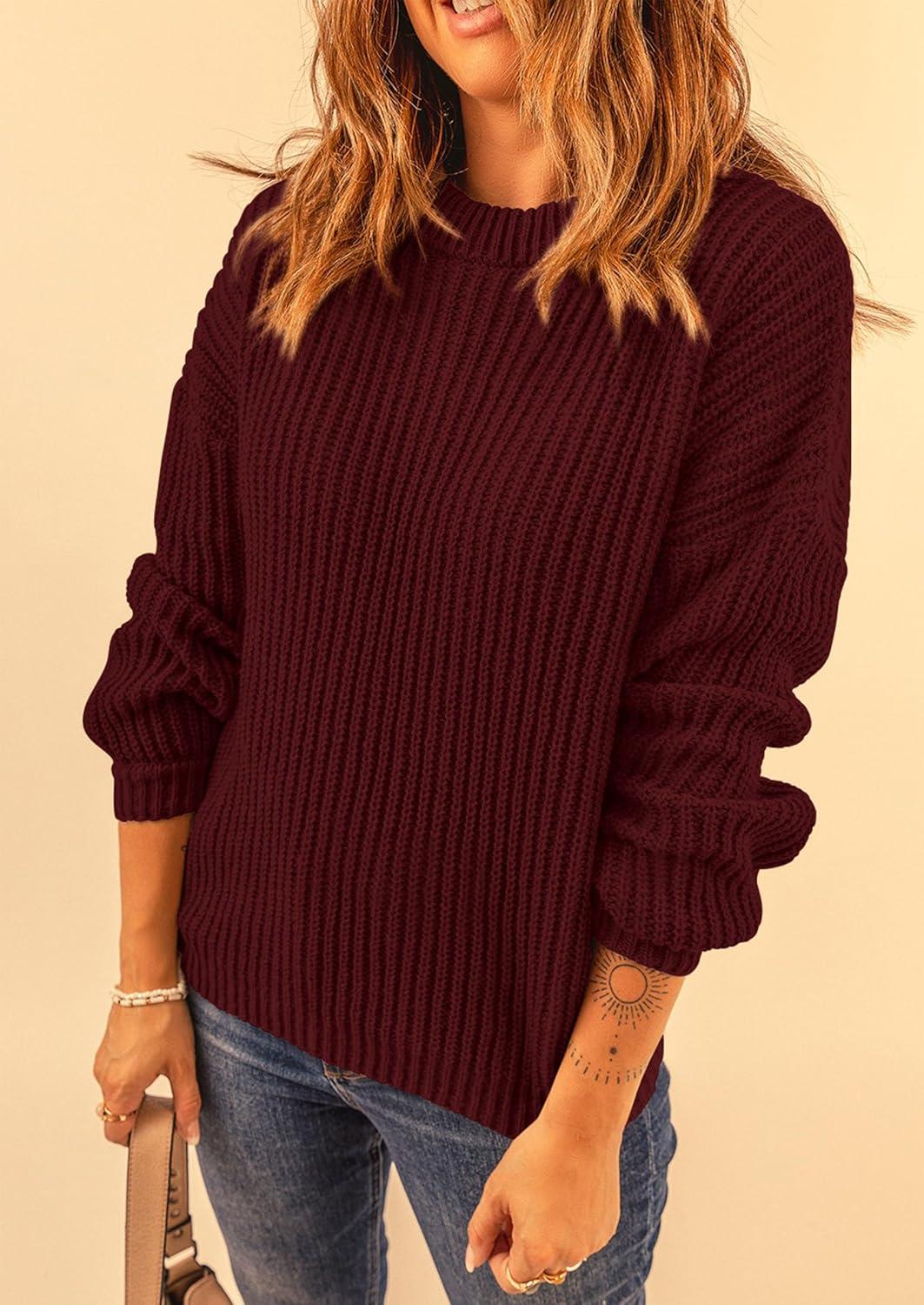PRETTYGARDEN Fall Sweaters for Women 2025 Fashion Long Sleeve Casual Ribbed Knit Winter Clothes Pullover Jumper Tops(Wine Red)