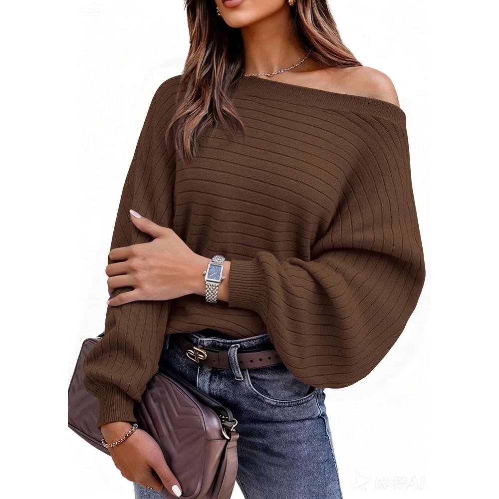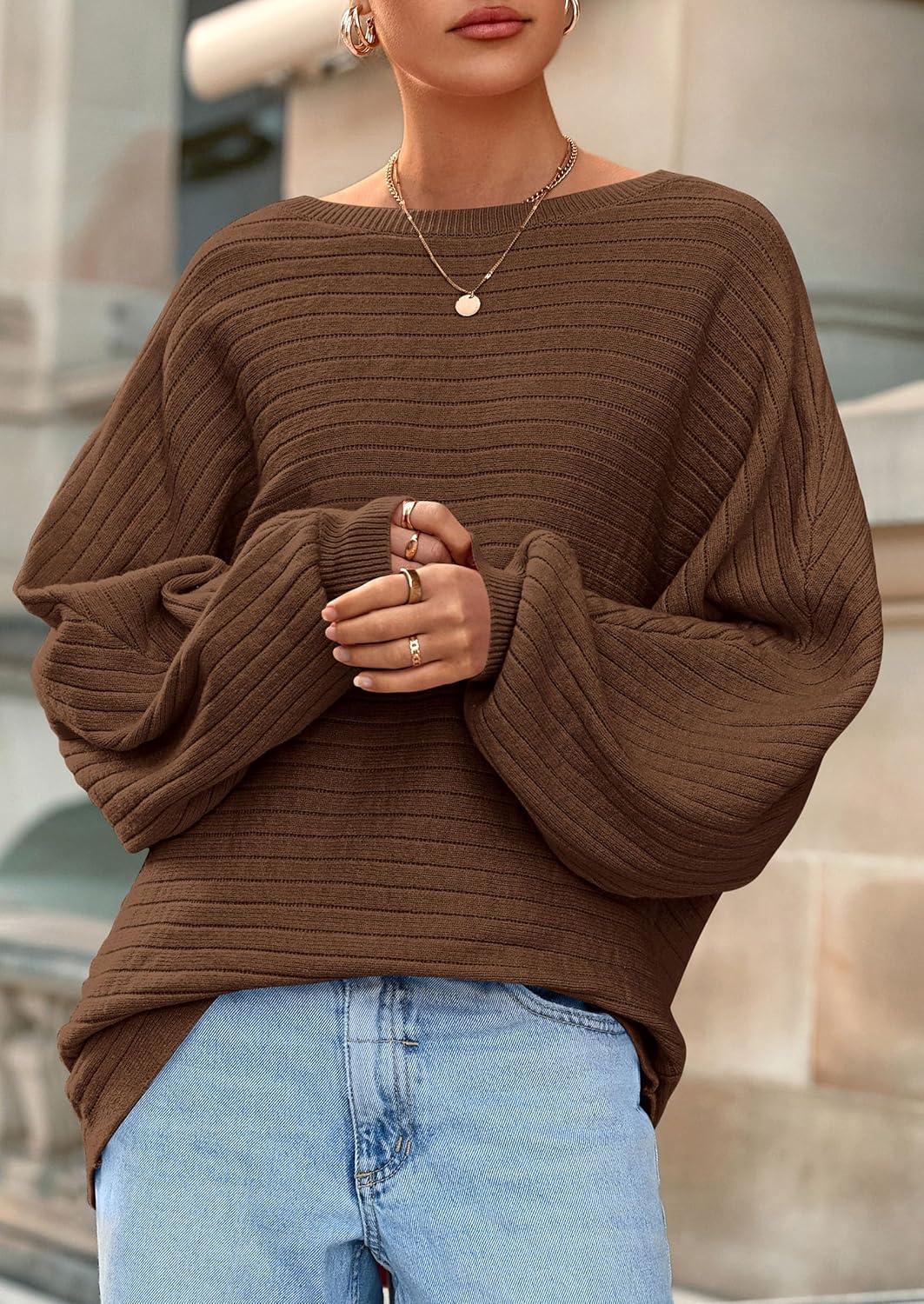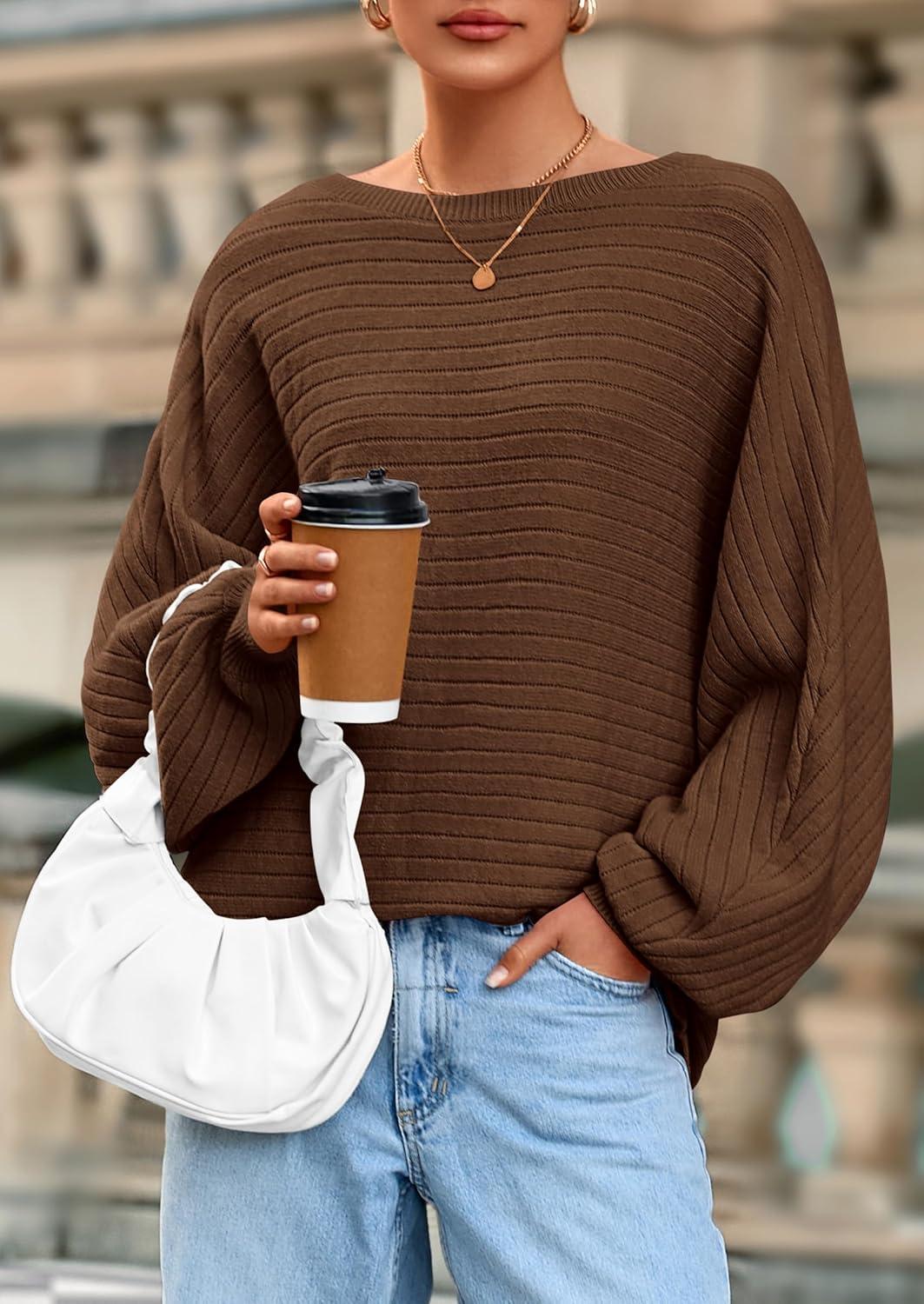 PRETTYGARDEN Fall Sweaters for Women 2025 Oversized Boat Neck Pullover Long Sleeve Knit Tops Cozy Winter Fashion Clothing(Brown)