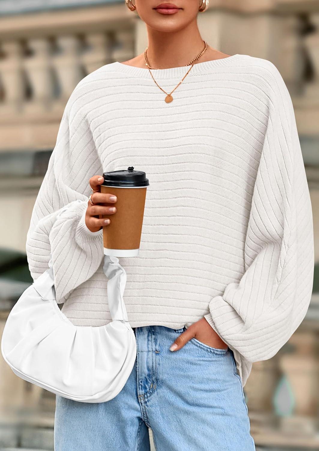 PRETTYGARDEN Fall Sweaters for Women 2025 Oversized Boat Neck Pullover Long Sleeve Knit Tops Cozy Winter Fashion Clothing(White)