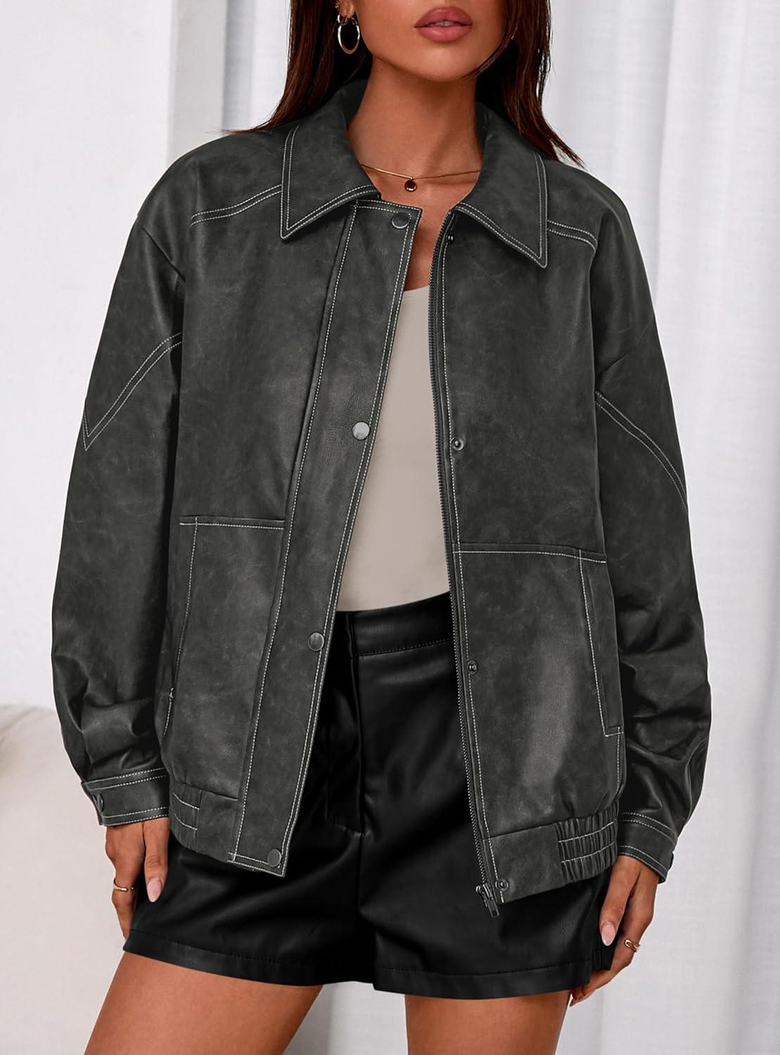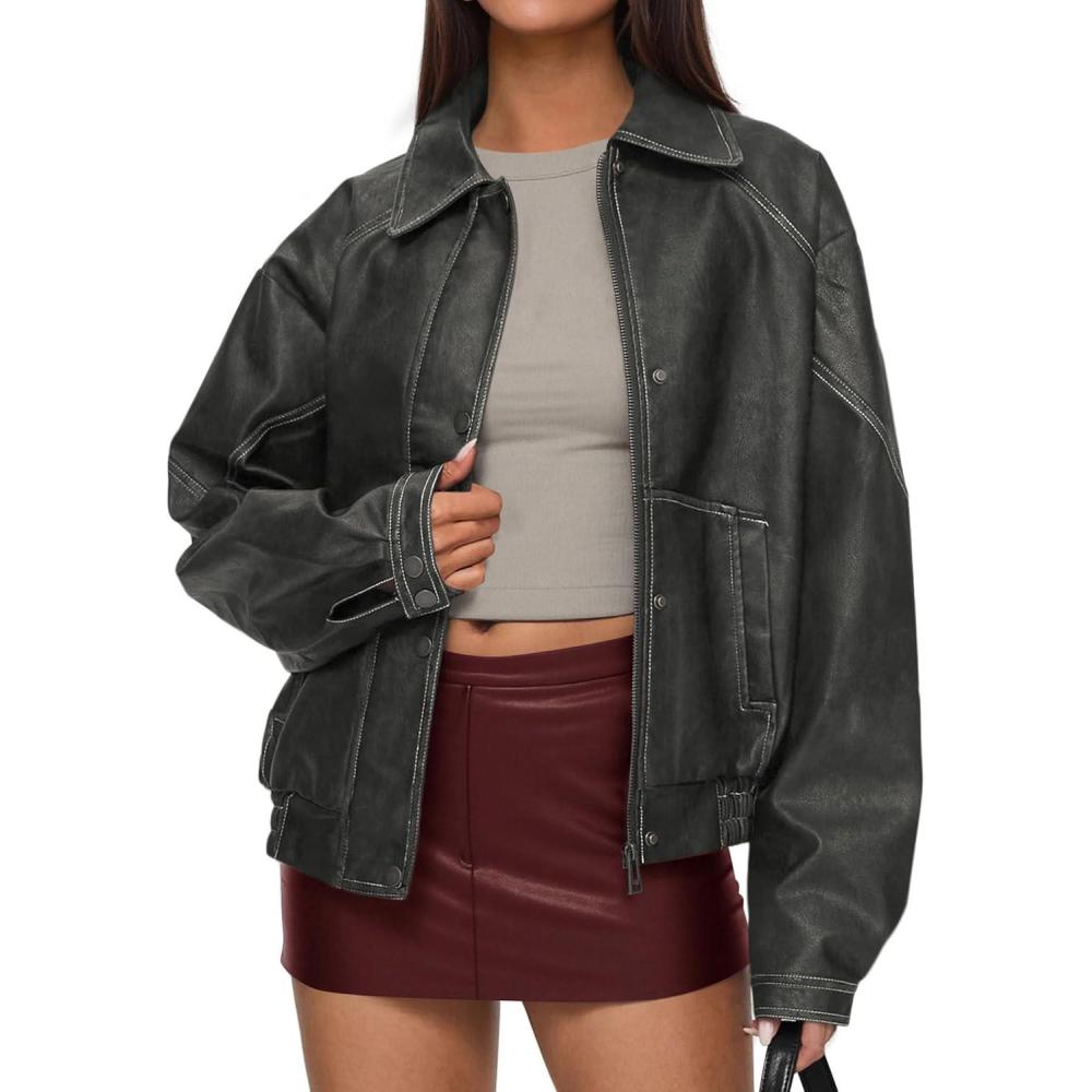 Be the first to review “PRETTYGARDEN Faux Leather Jacket Women Bomber Motorcycle Zip Up Jackets Oversized Fall Fashion Outfits 2025 Winter Coats(Grey)”