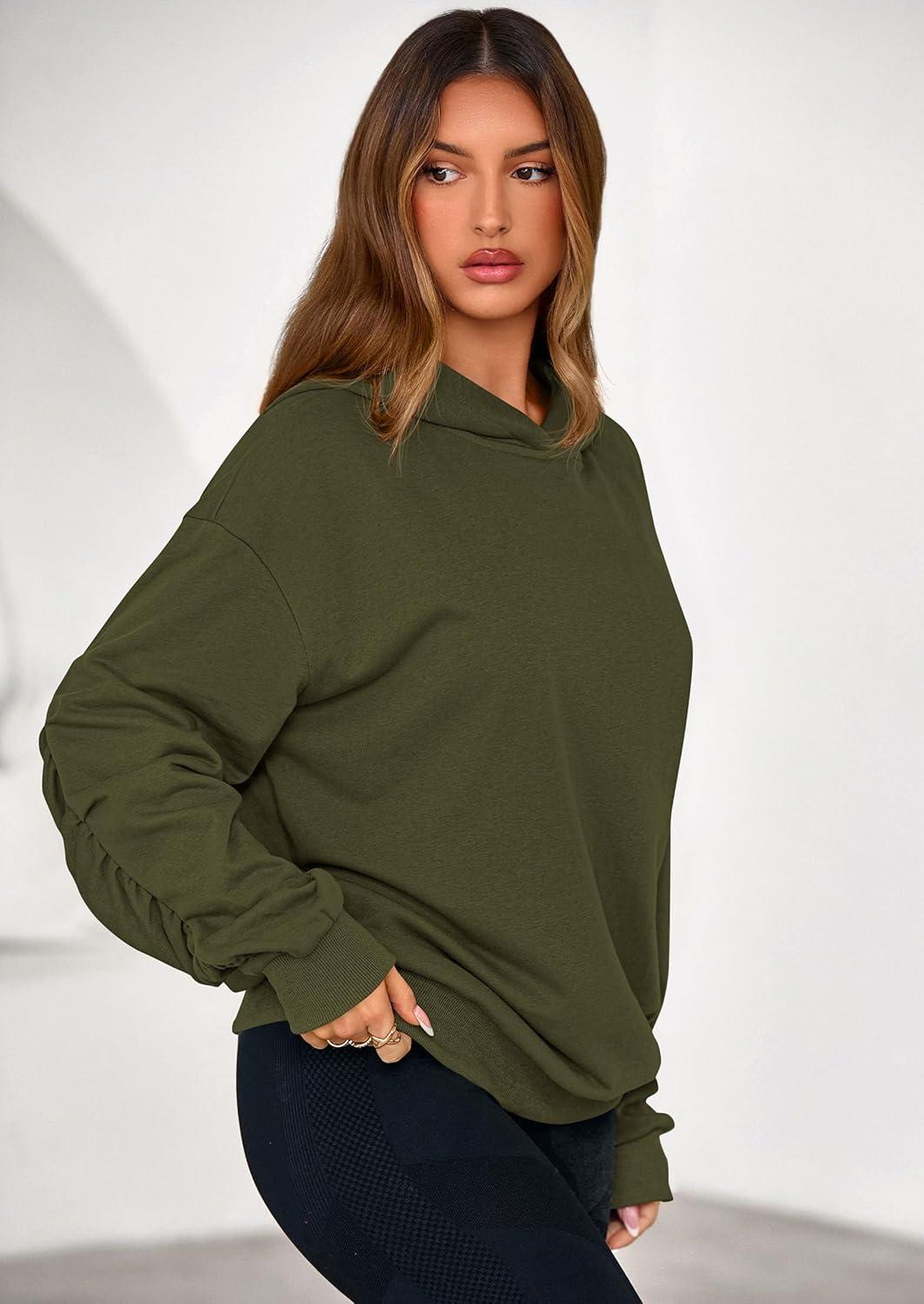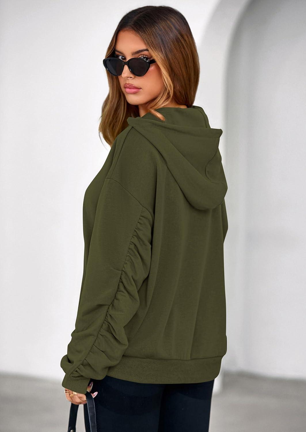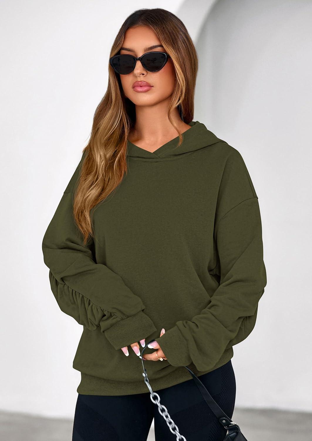PRETTYGARDEN Hoodies for Women Oversized Pullover Sweatshirts 2025 Ruched Long Sleeve Casual Tops Fall Fashion Y2K Clothes(Army Green)