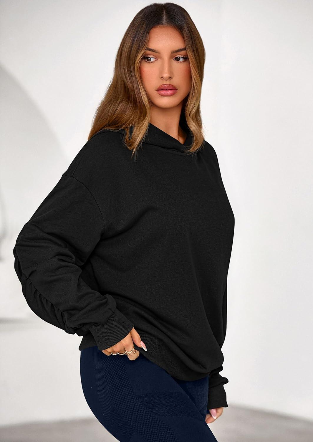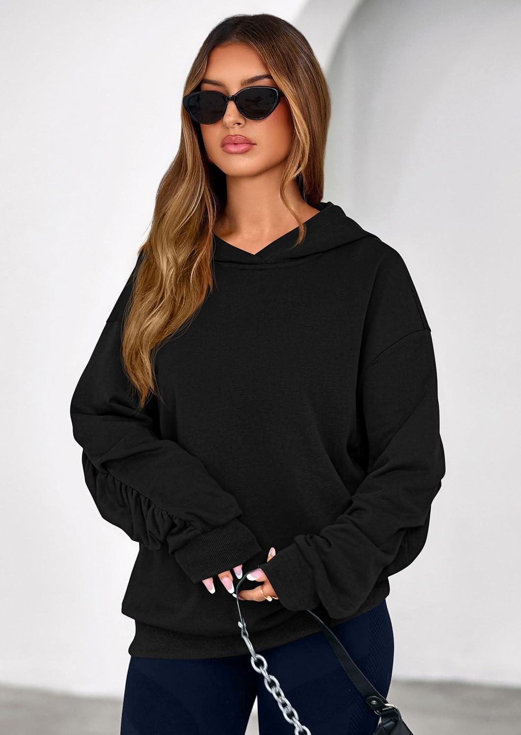PRETTYGARDEN Hoodies for Women Oversized Pullover Sweatshirts 2025 Ruched Long Sleeve Casual Tops Fall Fashion Y2K Clothes(Black)