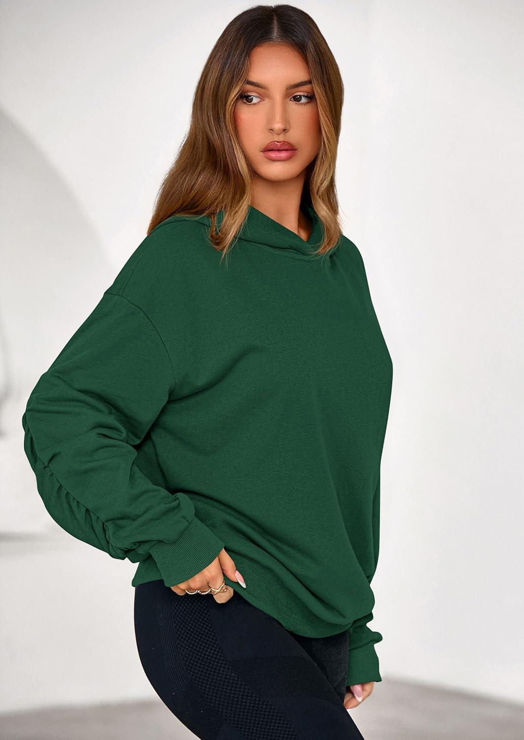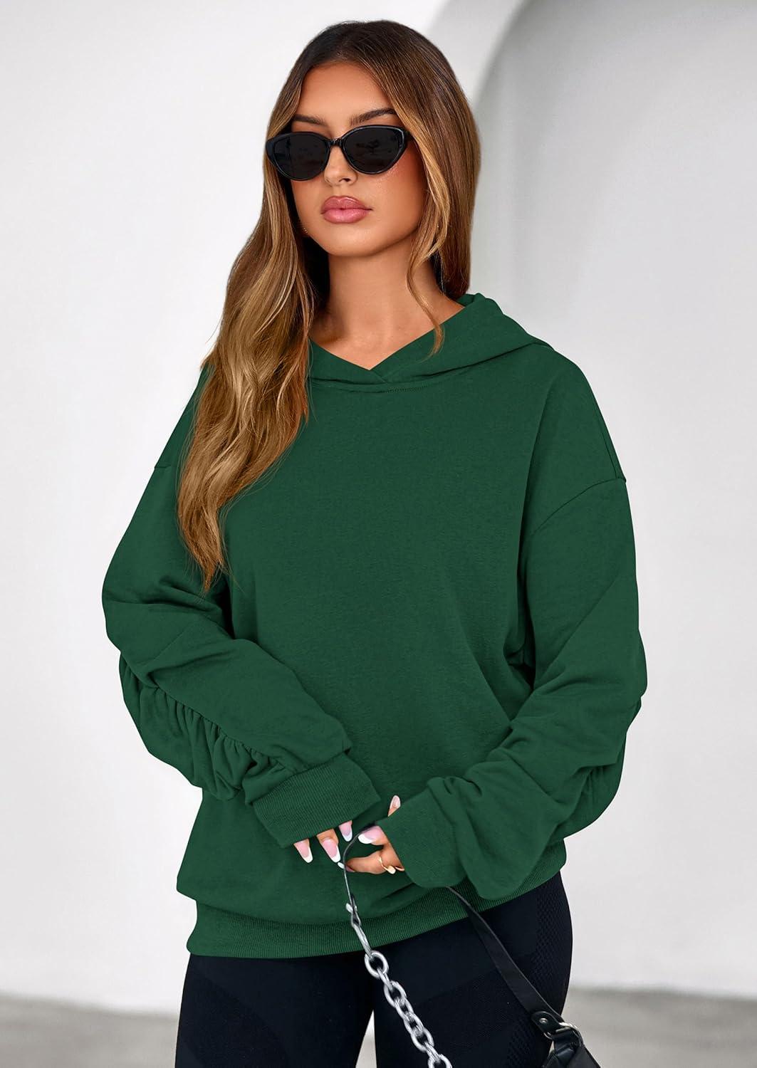 PRETTYGARDEN Hoodies for Women Oversized Pullover Sweatshirts 2025 Ruched Long Sleeve Casual Tops Fall Fashion Y2K Clothes(Dark Green)