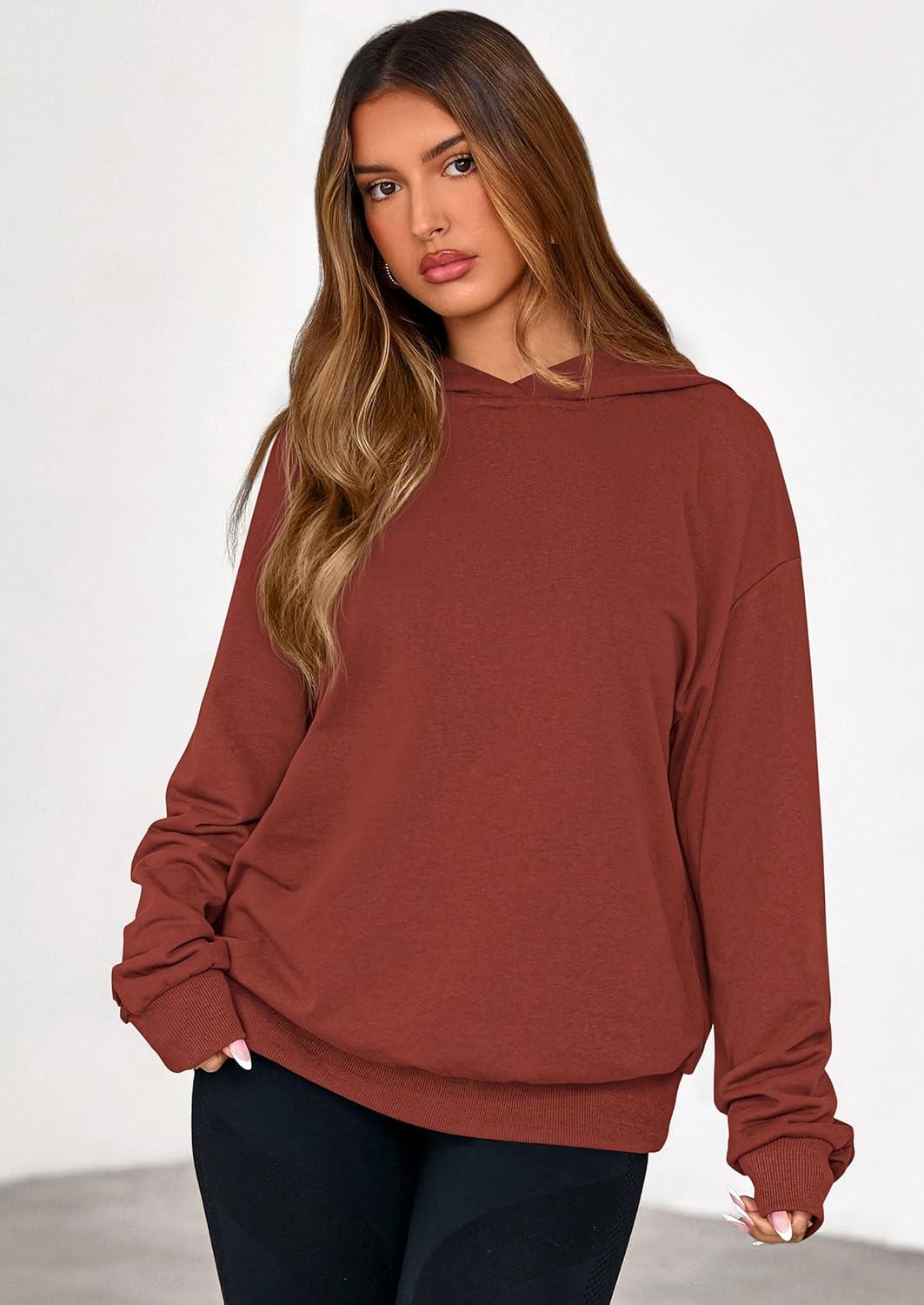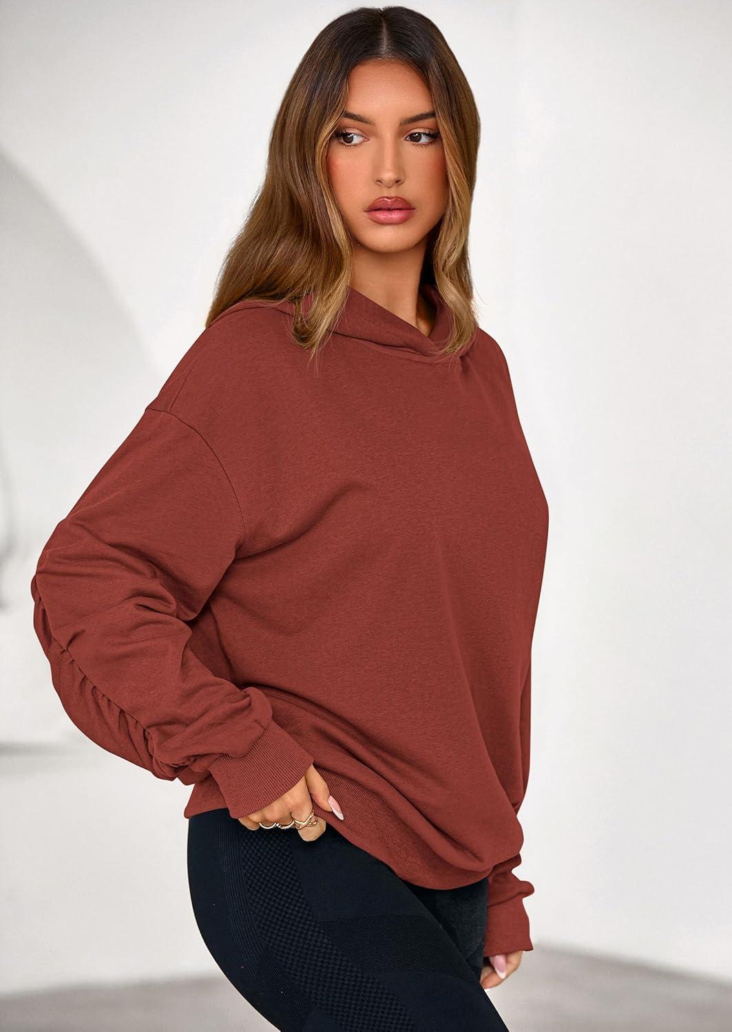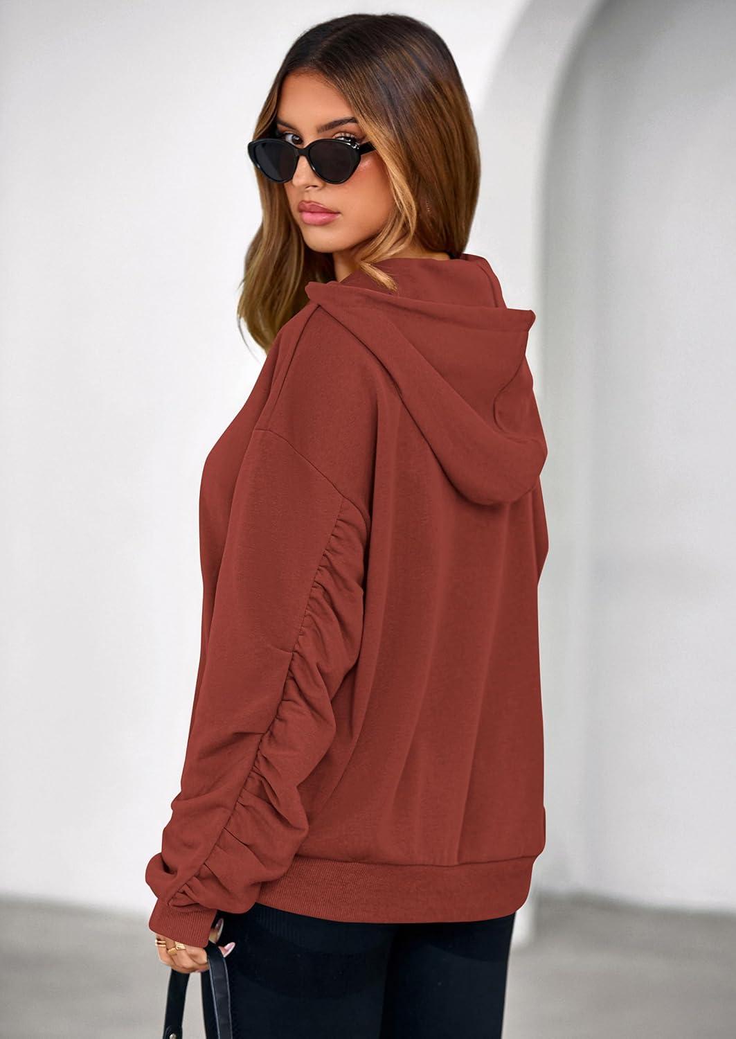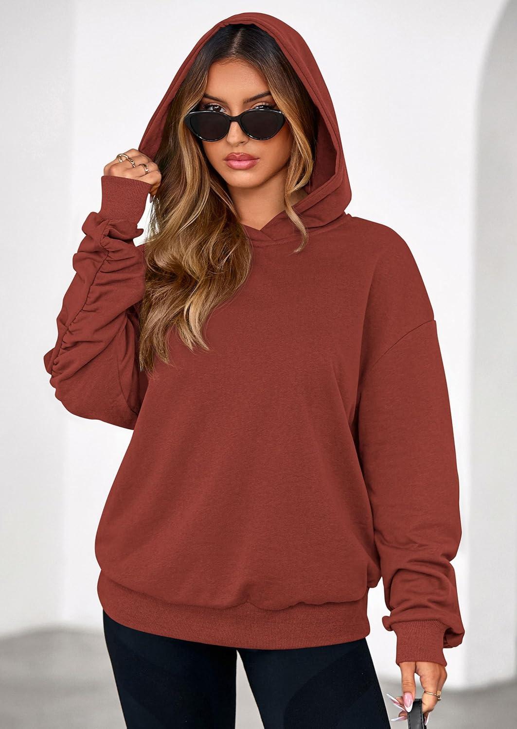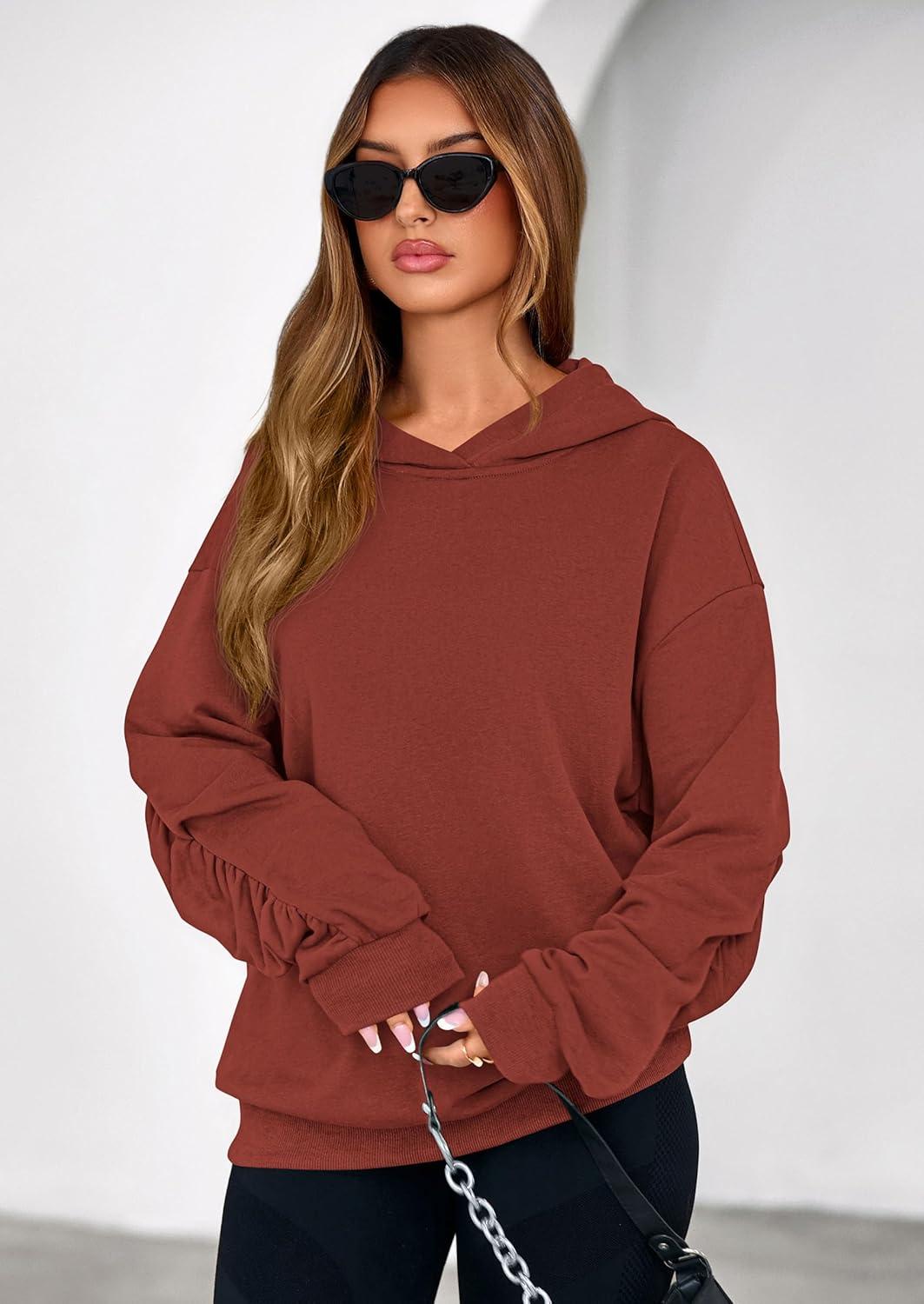 PRETTYGARDEN Hoodies for Women Oversized Pullover Sweatshirts 2025 Ruched Long Sleeve Casual Tops Fall Fashion Y2K Clothes(Rust)