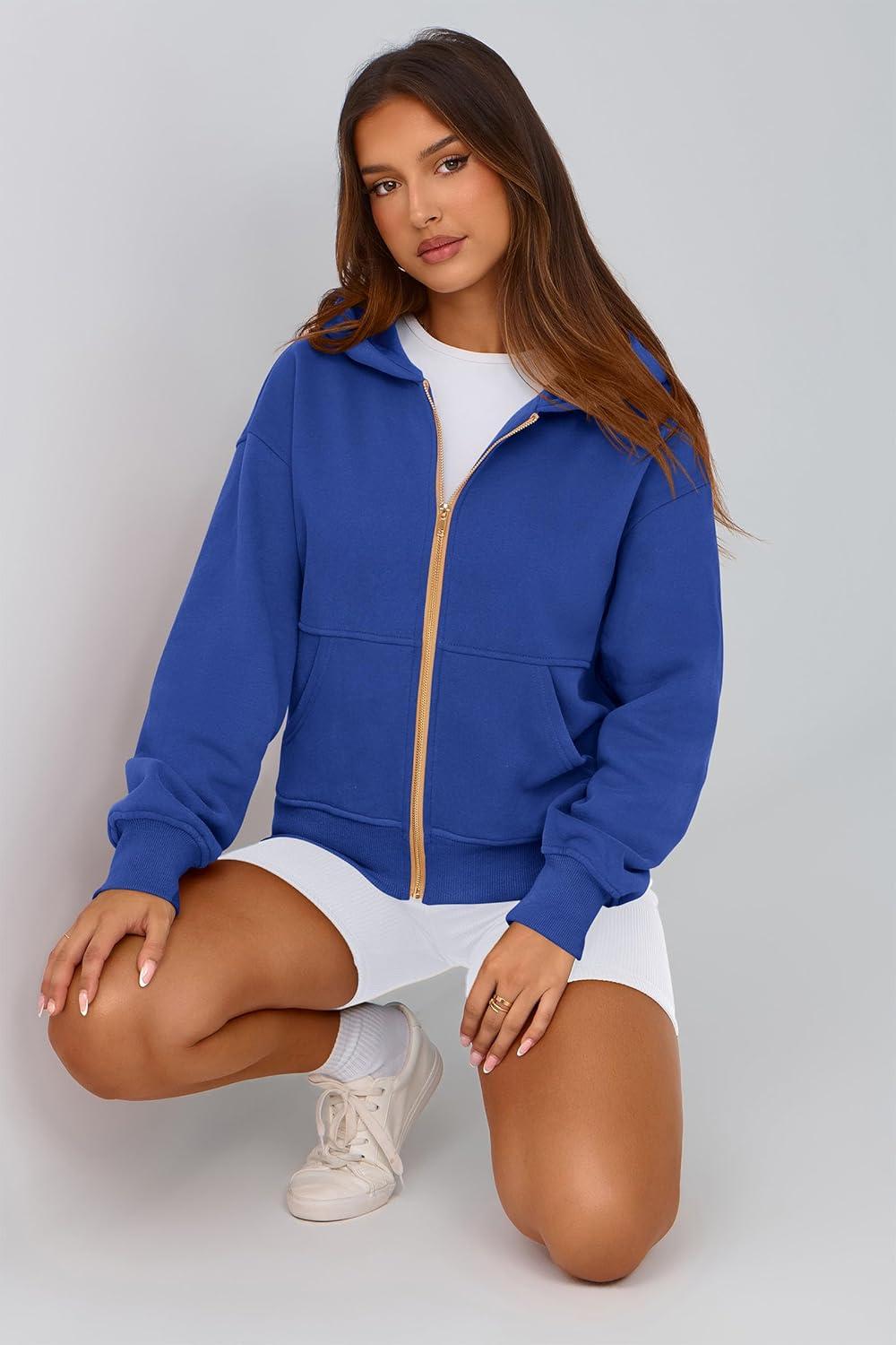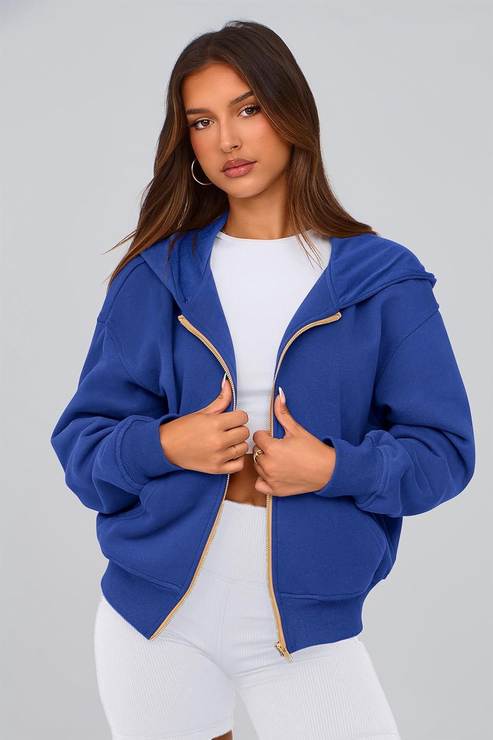 PRETTYGARDEN Hoodies for Women Sweatshirt Zip Up Hoodie Fall Fashion 2025 Trendy Long Sleeve Jackets Winter Clothing Outfits(Bright Blue)
