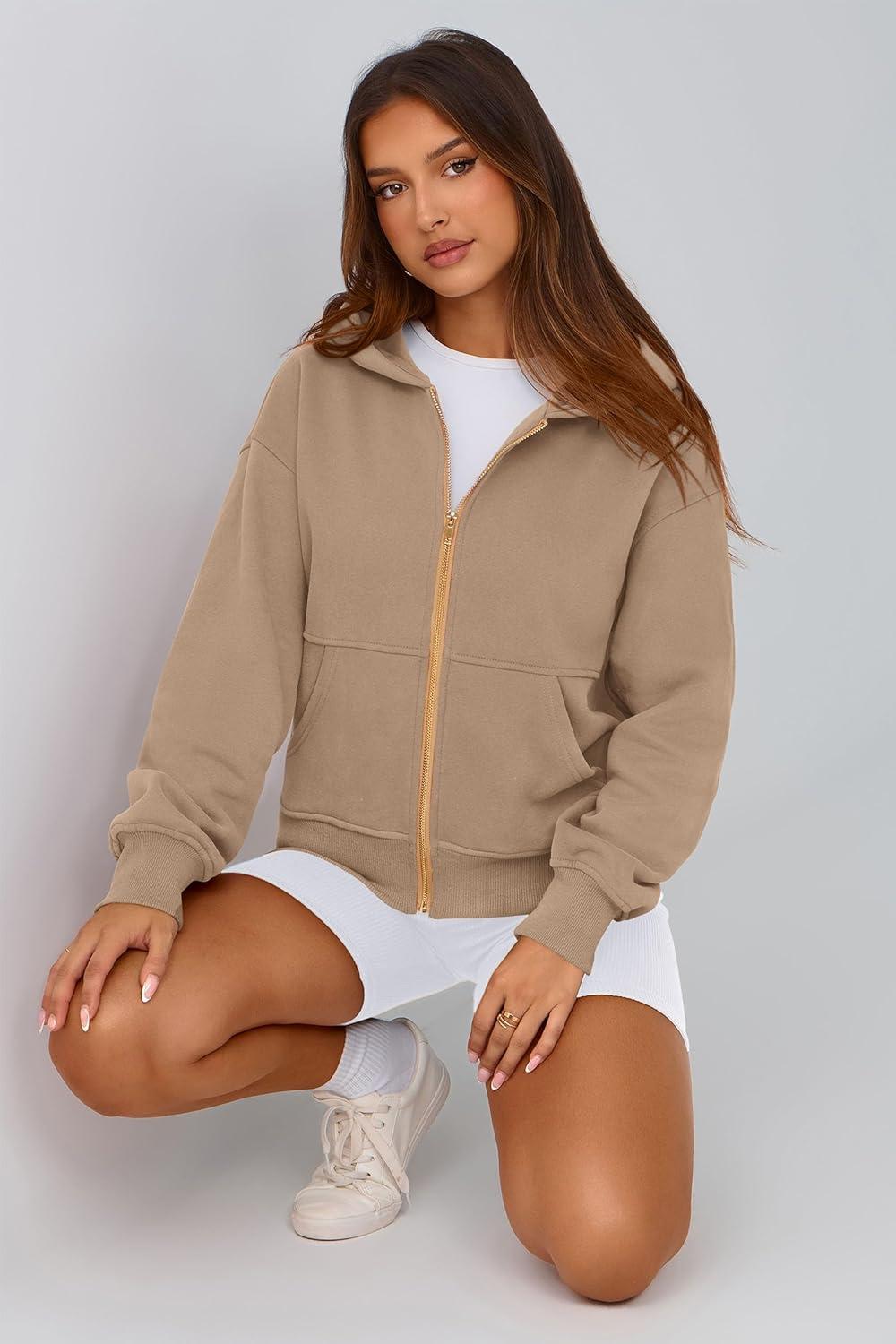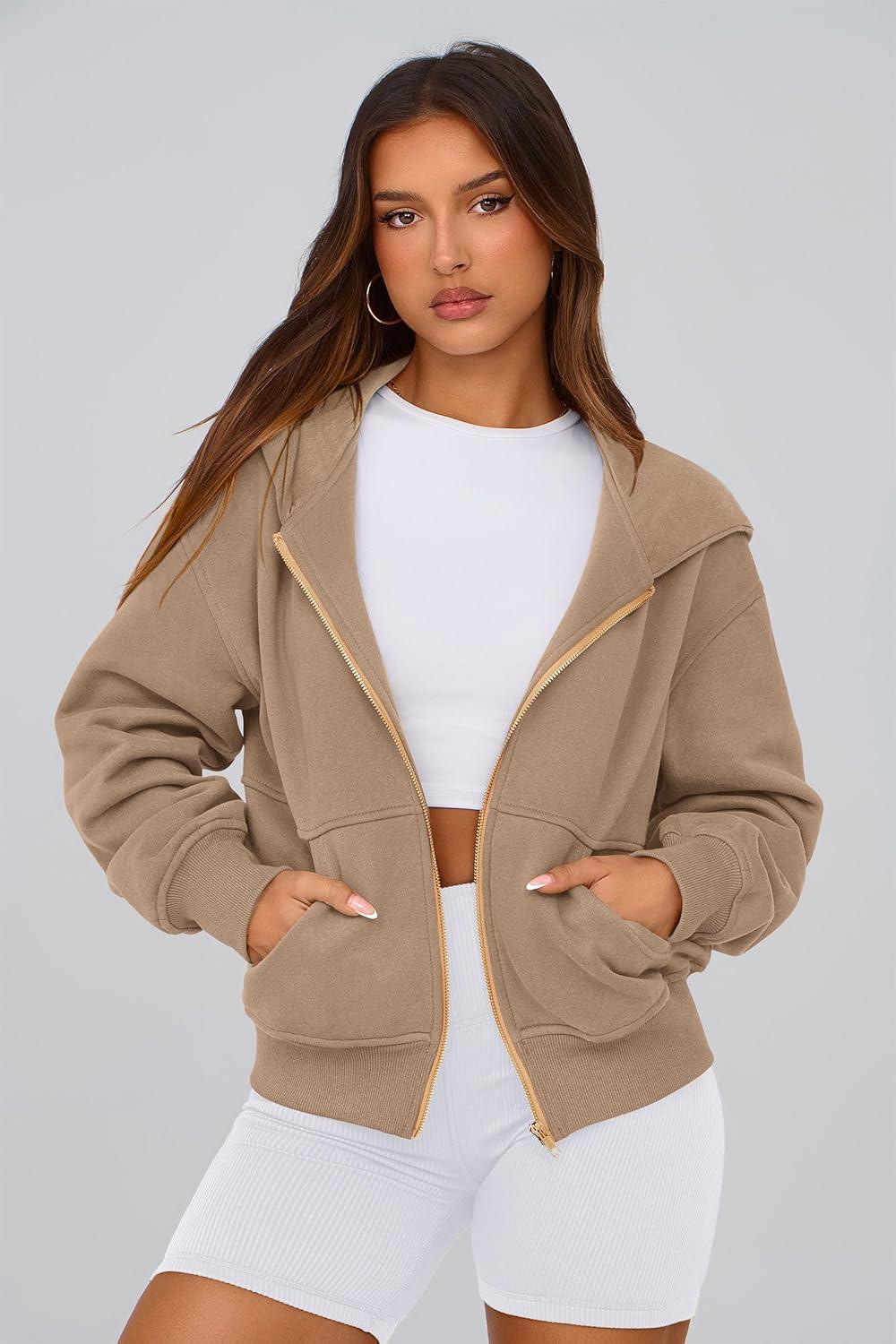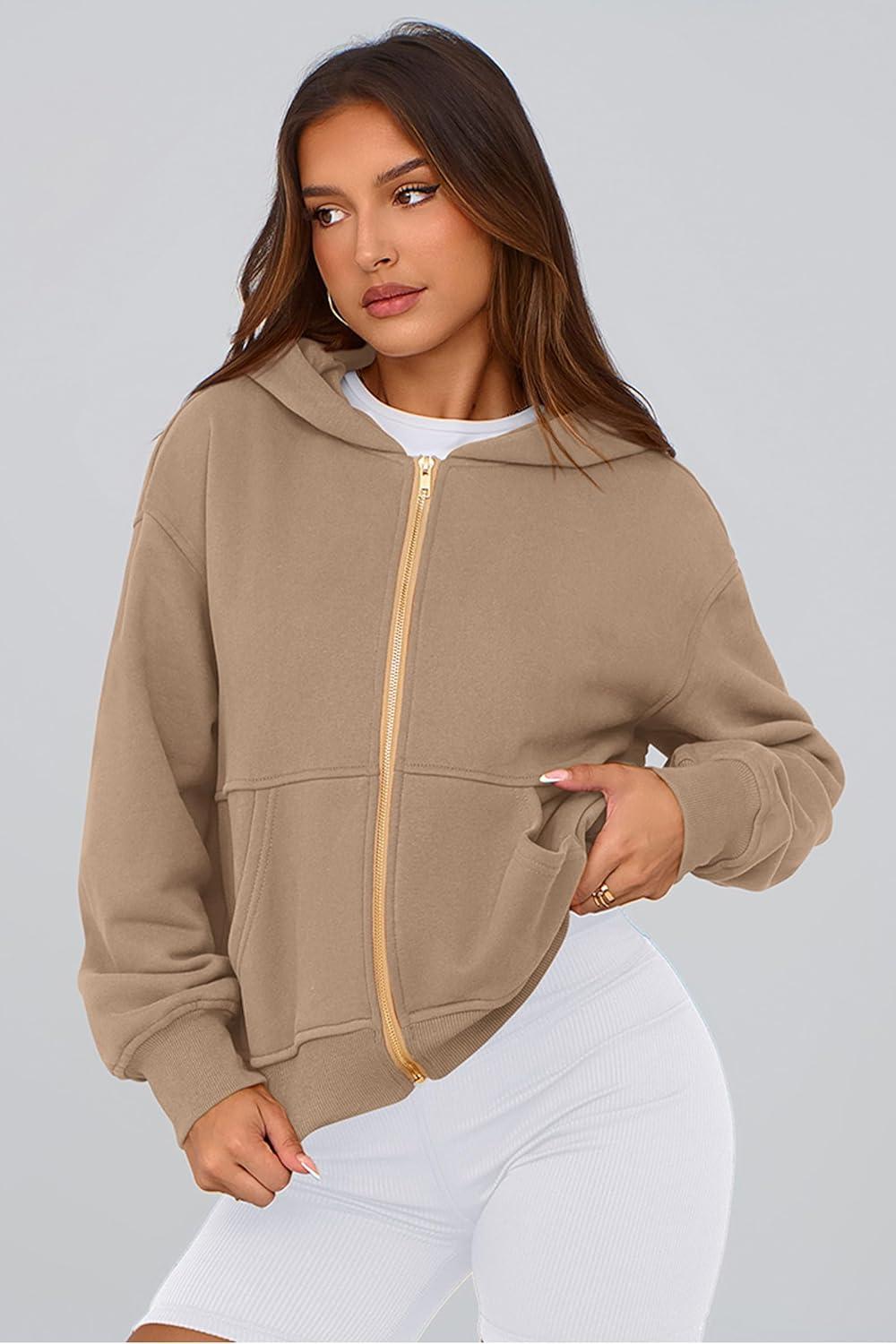 PRETTYGARDEN Hoodies for Women Sweatshirt Zip Up Hoodie Fall Fashion 2025 Trendy Long Sleeve Jackets Winter Clothing Outfits(Grey Khaki)