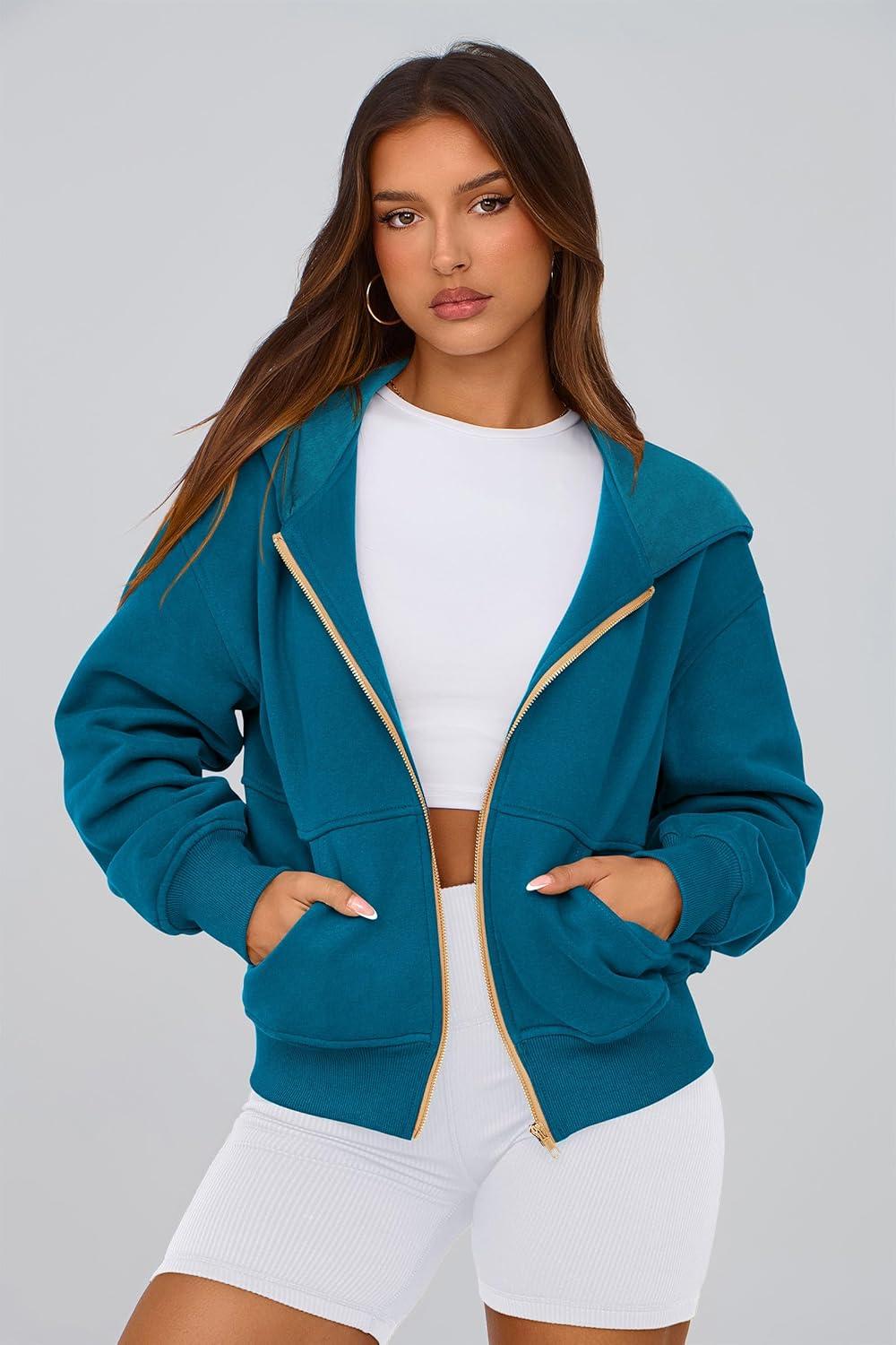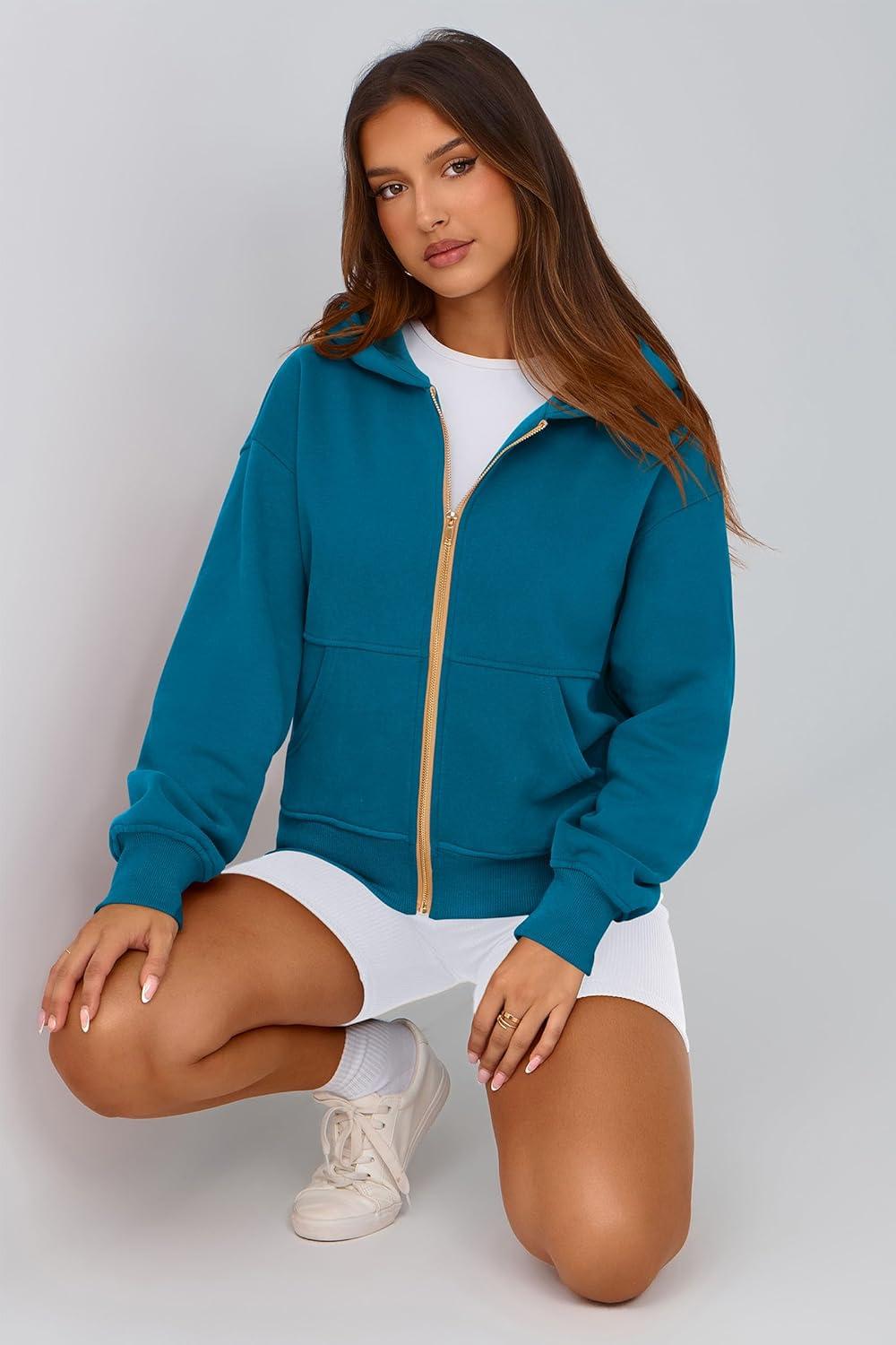 PRETTYGARDEN Hoodies for Women Sweatshirt Zip Up Hoodie Fall Fashion 2025 Trendy Long Sleeve Jackets Winter Clothing Outfits(Lake Blue)