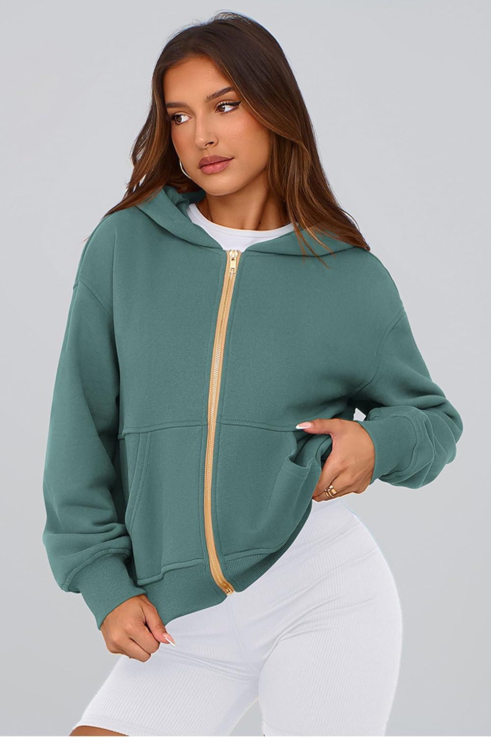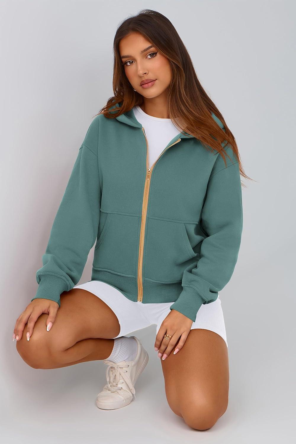 PRETTYGARDEN Hoodies for Women Sweatshirt Zip Up Hoodie Fall Fashion 2025 Trendy Long Sleeve Jackets Winter Clothing Outfits(Sage Green)