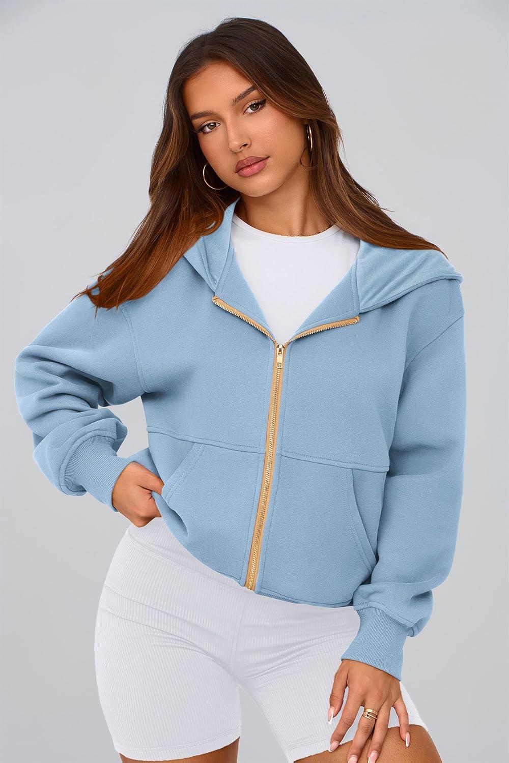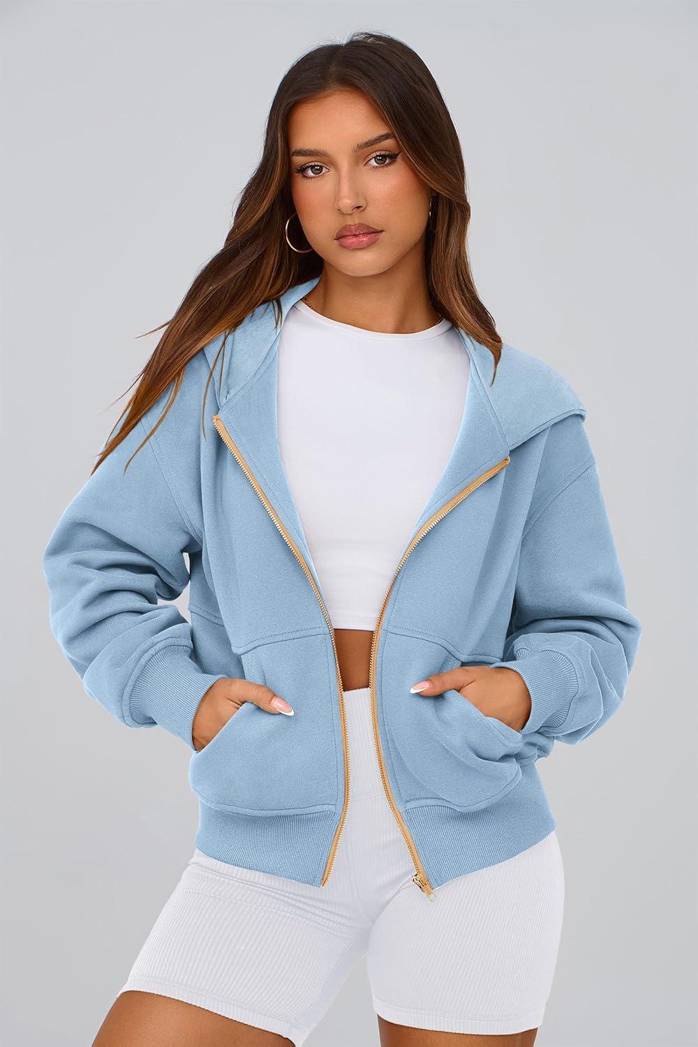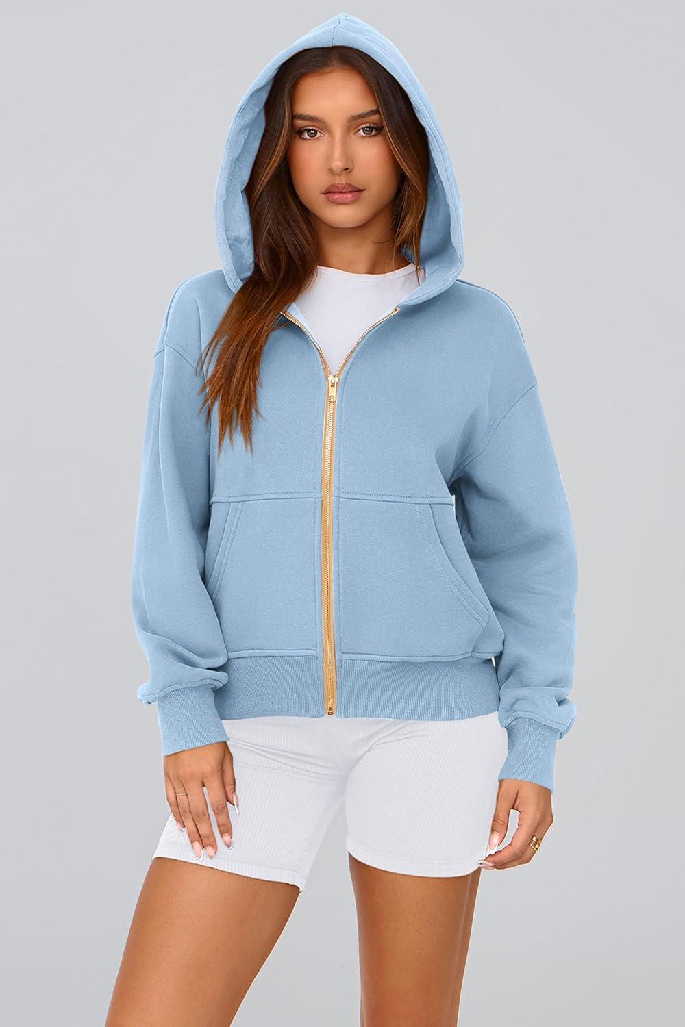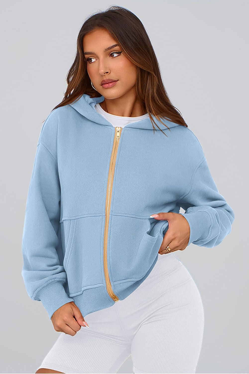 PRETTYGARDEN Hoodies for Women Sweatshirt Zip Up Hoodie Fall Fashion 2025 Trendy Long Sleeve Jackets Winter Clothing Outfits(Sky Blue)