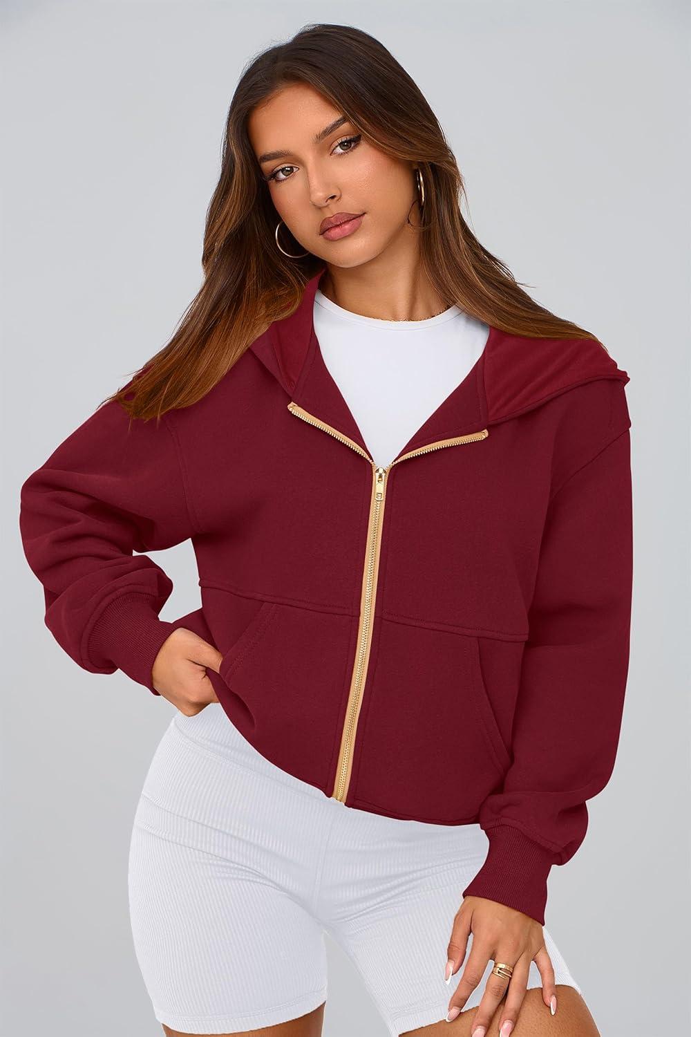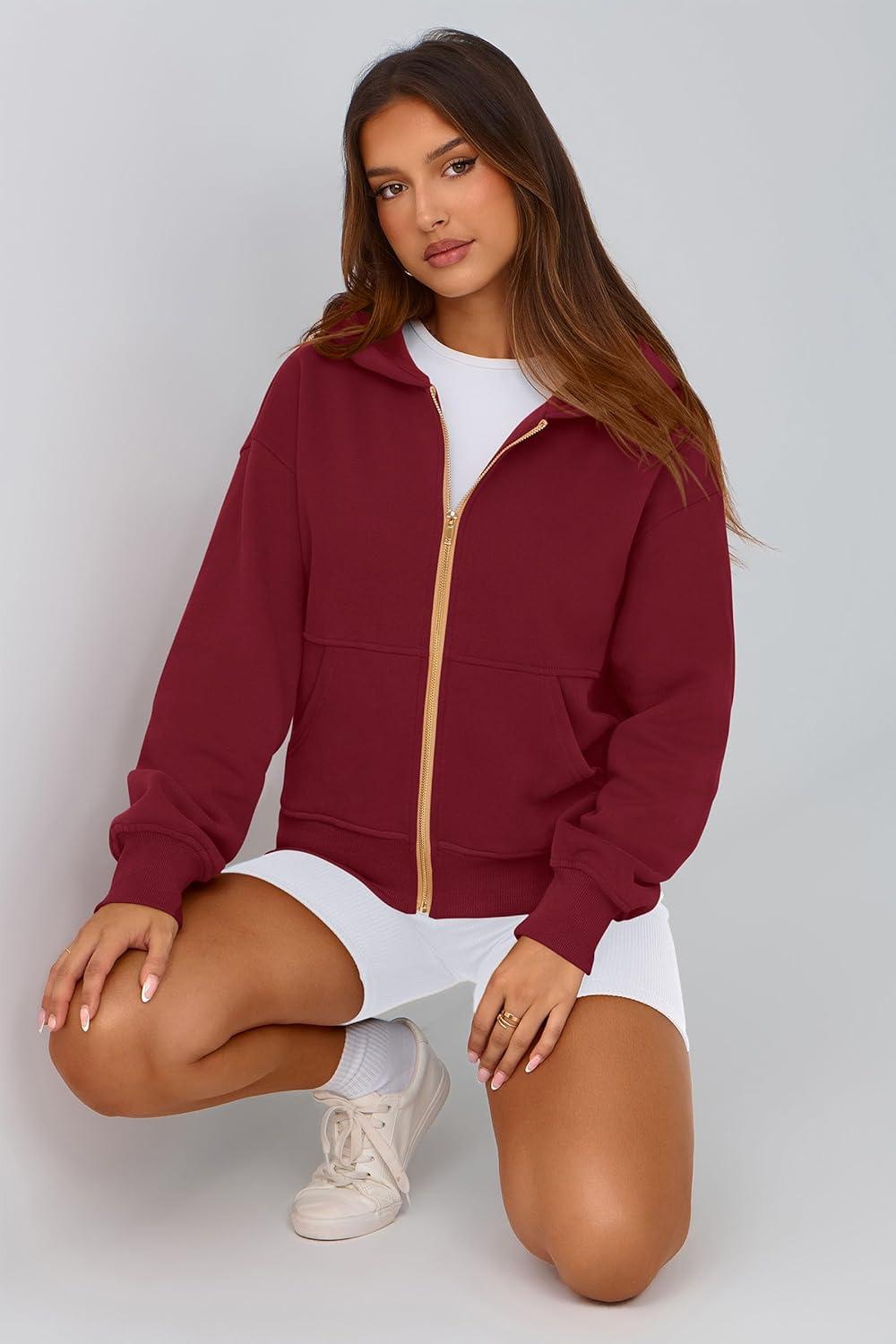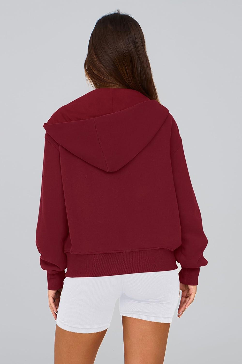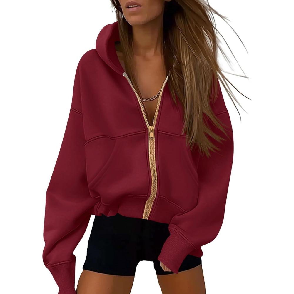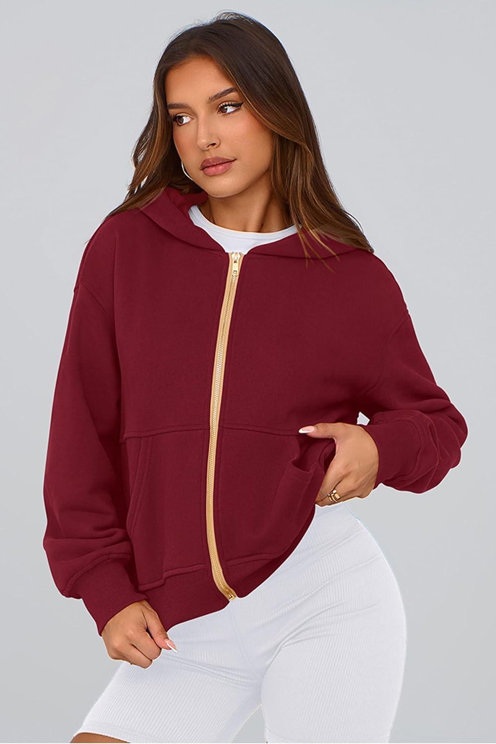 PRETTYGARDEN Hoodies for Women Sweatshirt Zip Up Hoodie Fall Fashion 2025 Trendy Long Sleeve Jackets Winter Clothing Outfits(Wine Red)