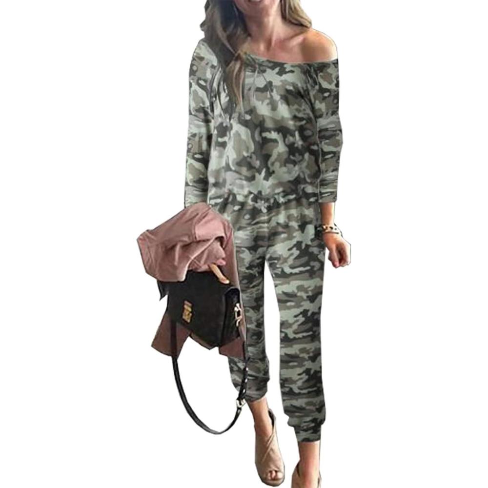 imagePRETTYGARDEN Jumpsuits for Women Dressy 2025 Fall Long Sleeve Off Shoulder Elastic Waist Rompers One Piece Travel OutfitsCamo
