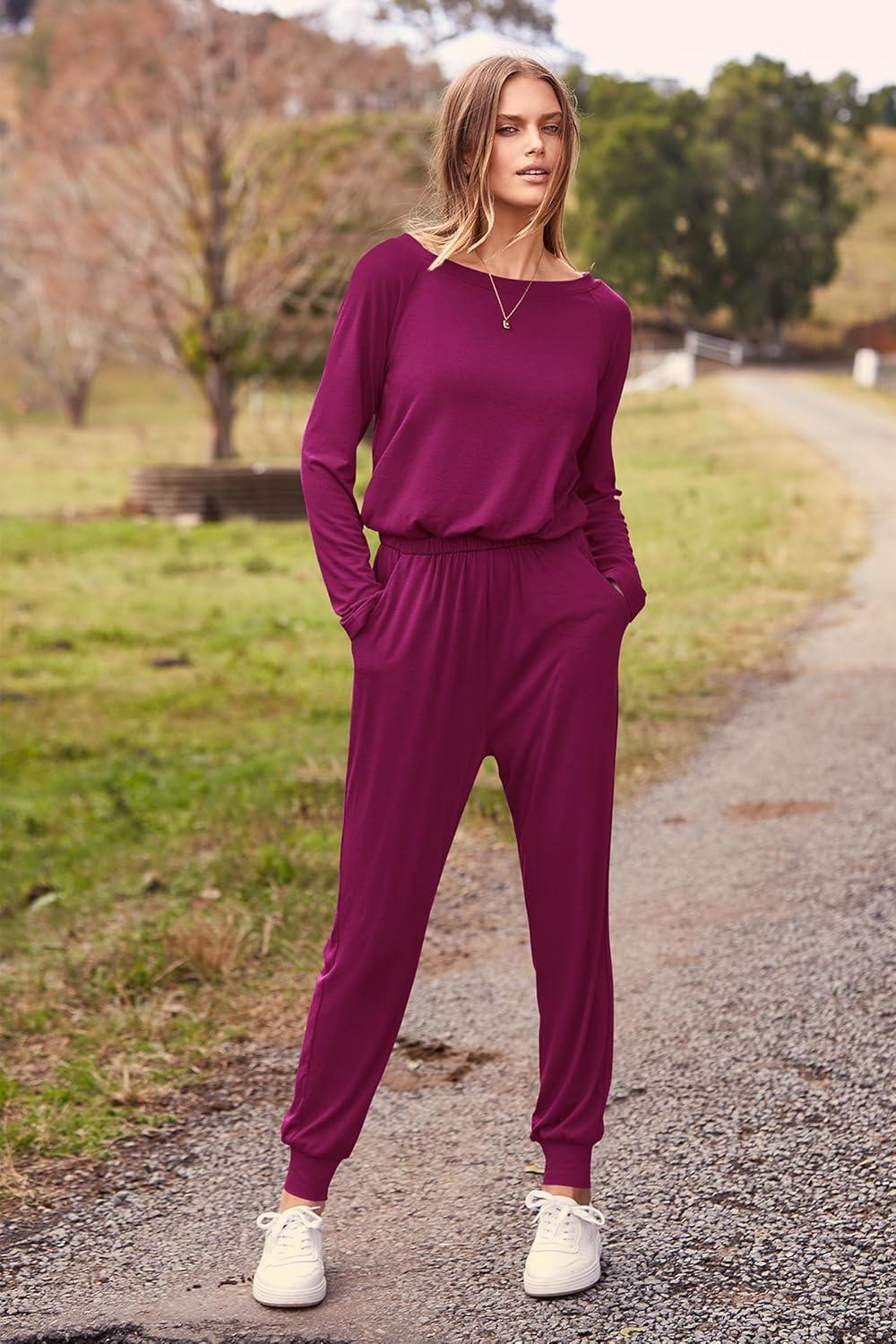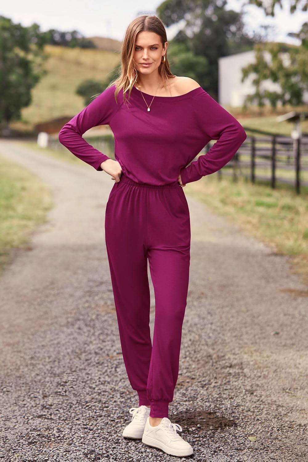 PRETTYGARDEN Jumpsuits for Women Dressy 2025 Fall Long Sleeve Off Shoulder Elastic Waist Rompers One Piece Travel Outfits(Purple)
