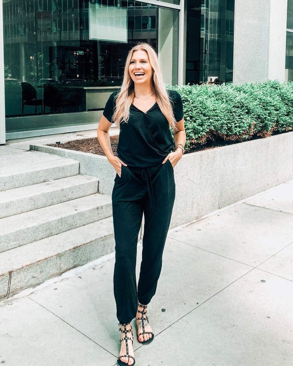imagePRETTYGARDEN Jumpsuits for Women Dressy 2025 Summer Casual Short Sleeve Romper Spring Airport Beach Vacation Travel OutfitsBlack