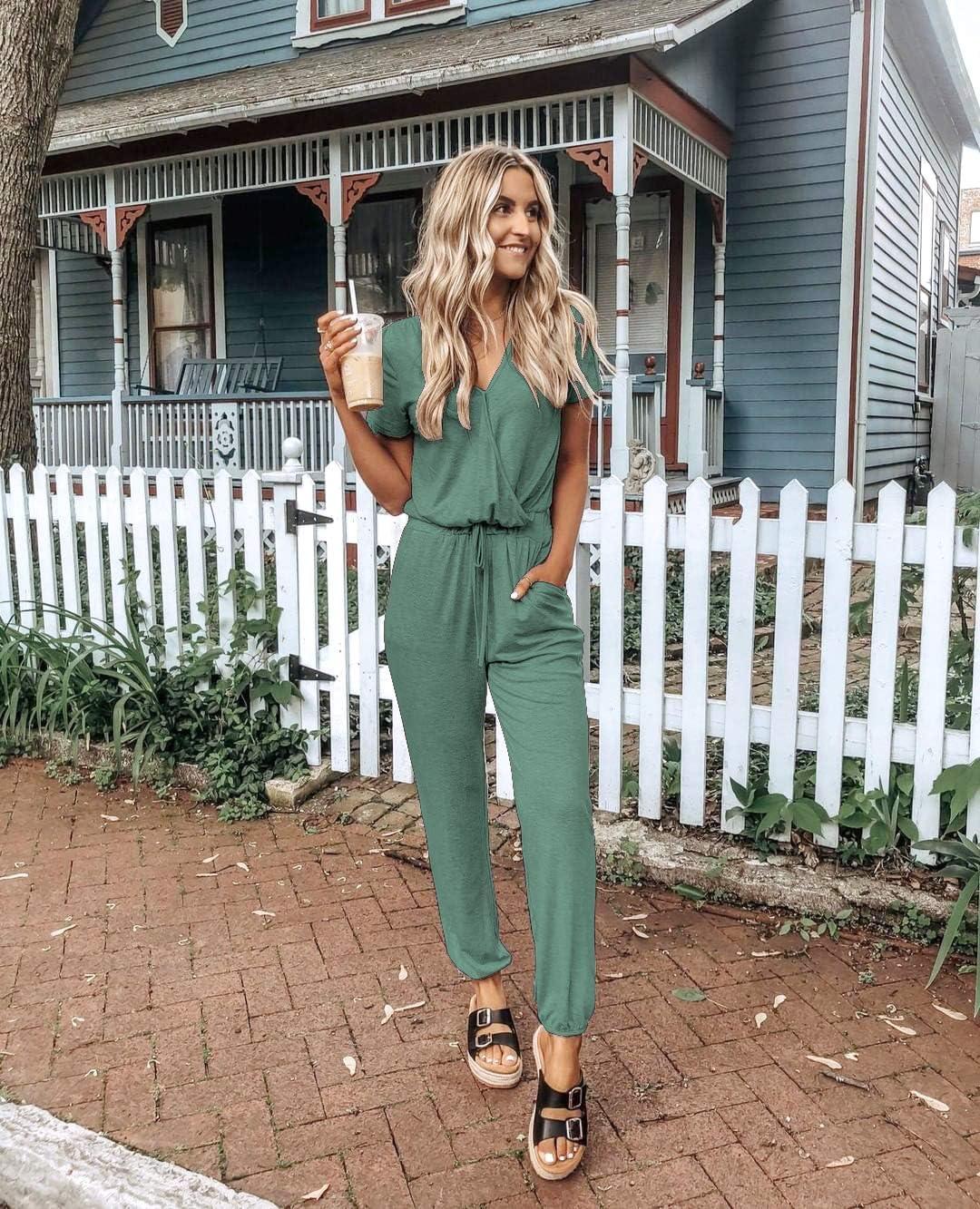 imagePRETTYGARDEN Jumpsuits for Women Dressy 2025 Summer Casual Short Sleeve Romper Spring Airport Beach Vacation Travel OutfitsGreen
