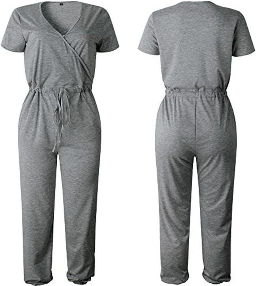 PRETTYGARDEN Jumpsuits for Women Dressy 2025 Summer Casual Short Sleeve Romper Spring Airport Beach Vacation Travel Outfits(Grey)