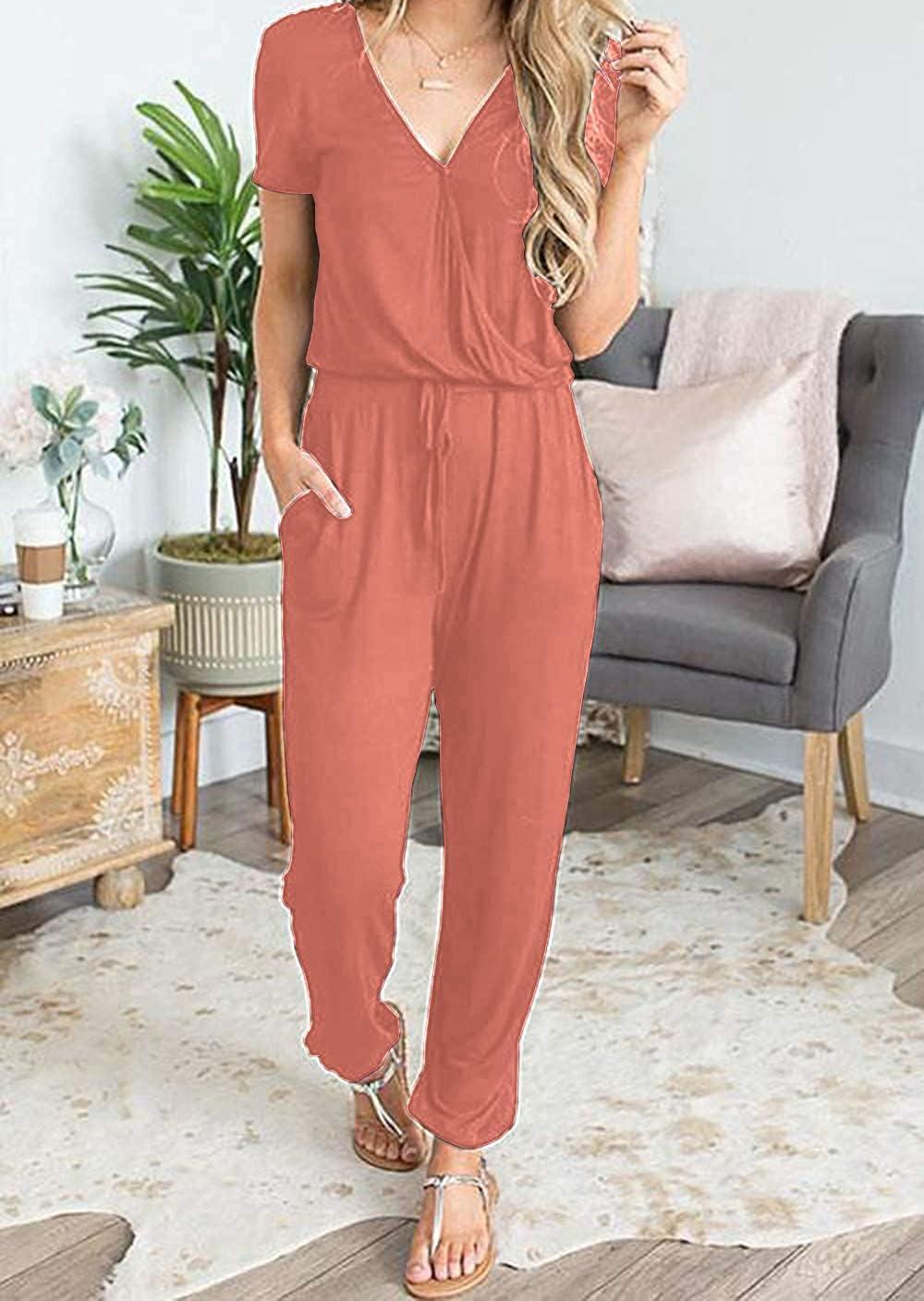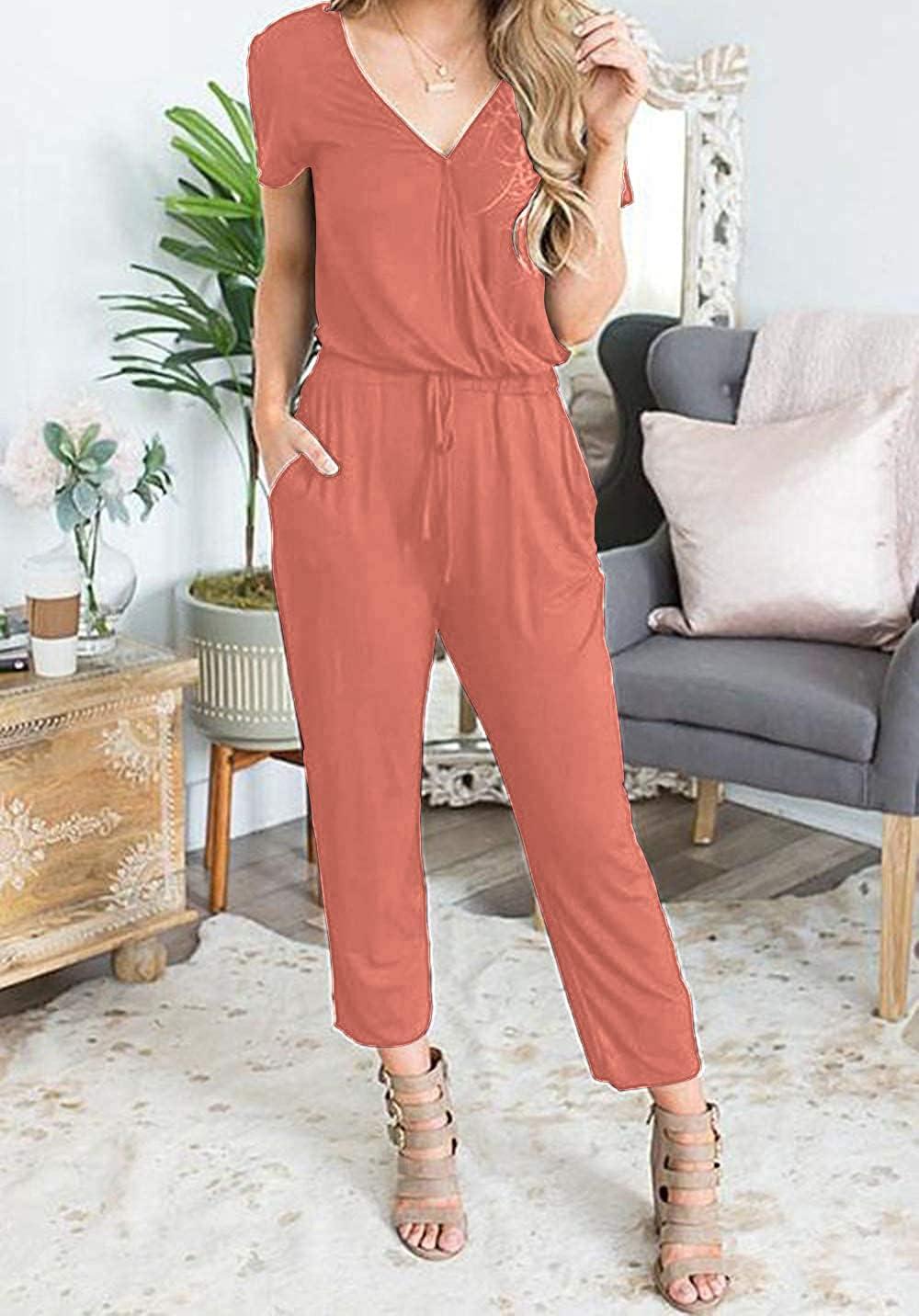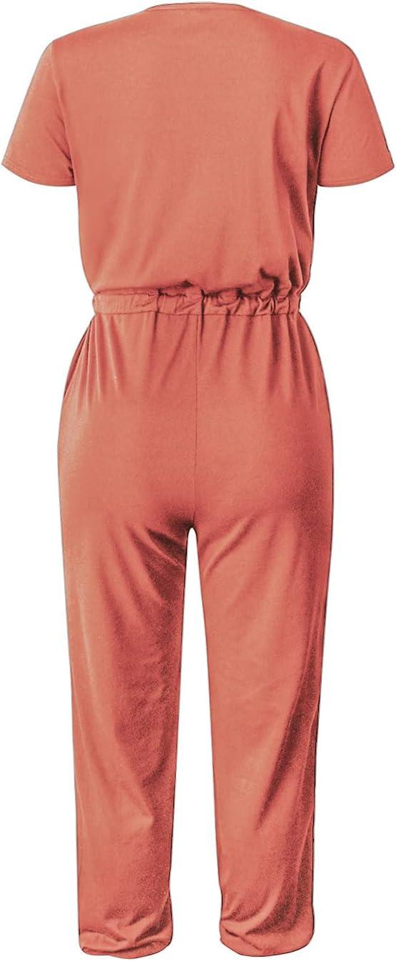 PRETTYGARDEN Jumpsuits for Women Dressy 2025 Summer Casual Short Sleeve Romper Spring Airport Beach Vacation Travel Outfits(Light Pink)