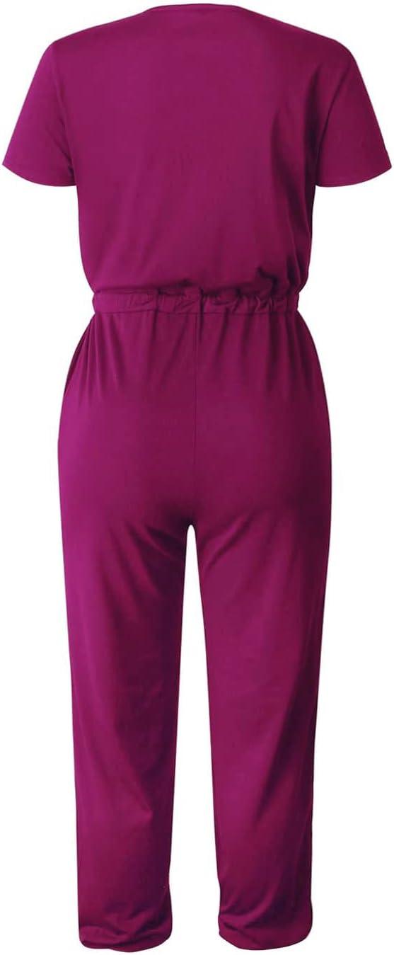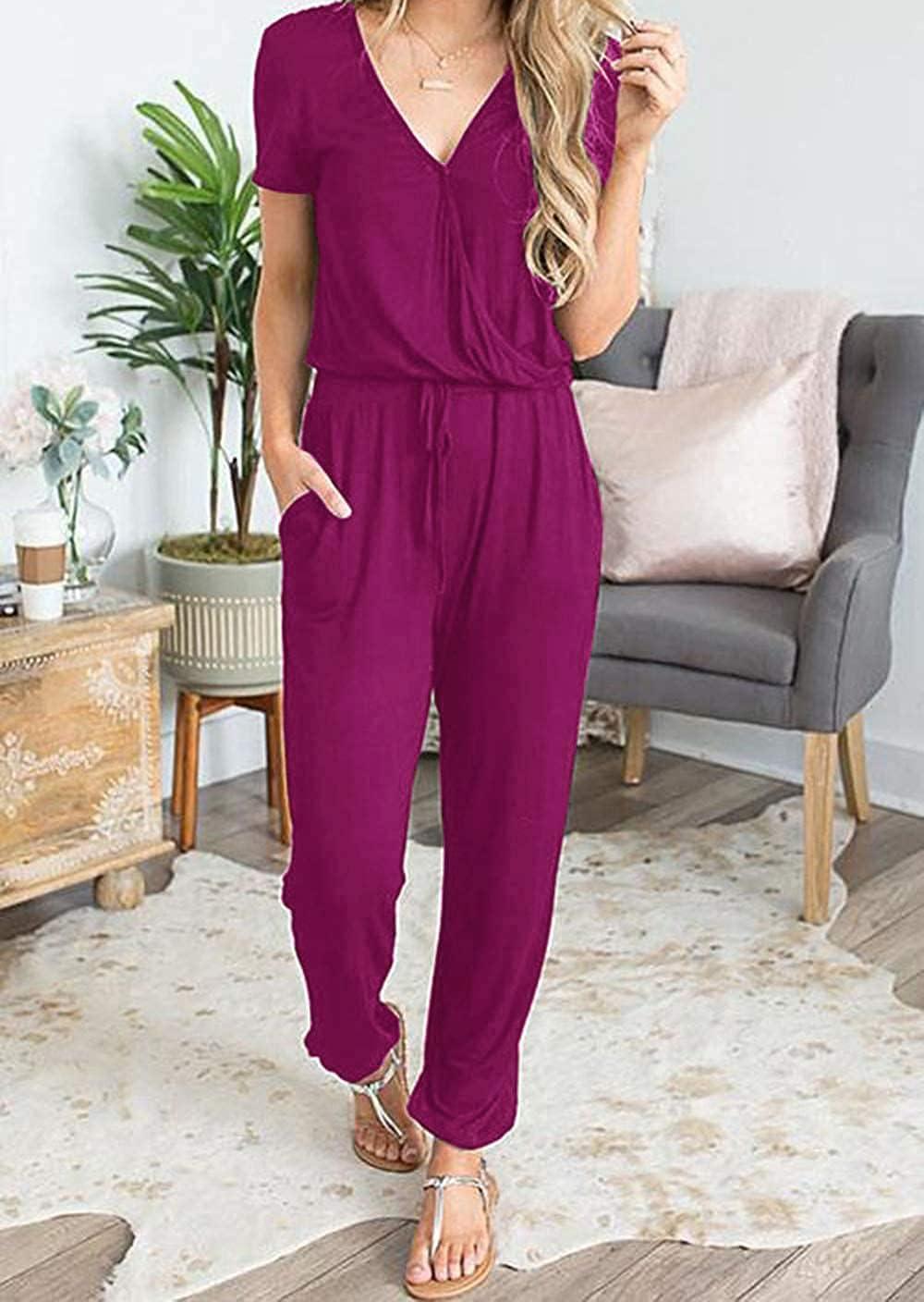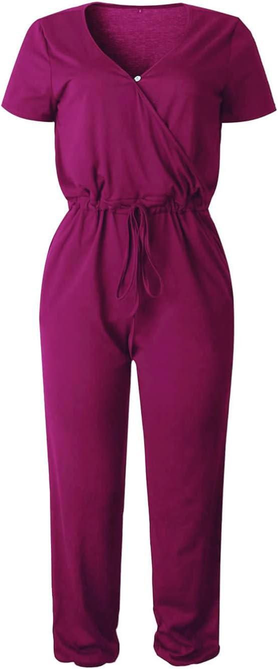 PRETTYGARDEN Jumpsuits for Women Dressy 2025 Summer Casual Short Sleeve Romper Spring Airport Beach Vacation Travel Outfits(Purple Red)
