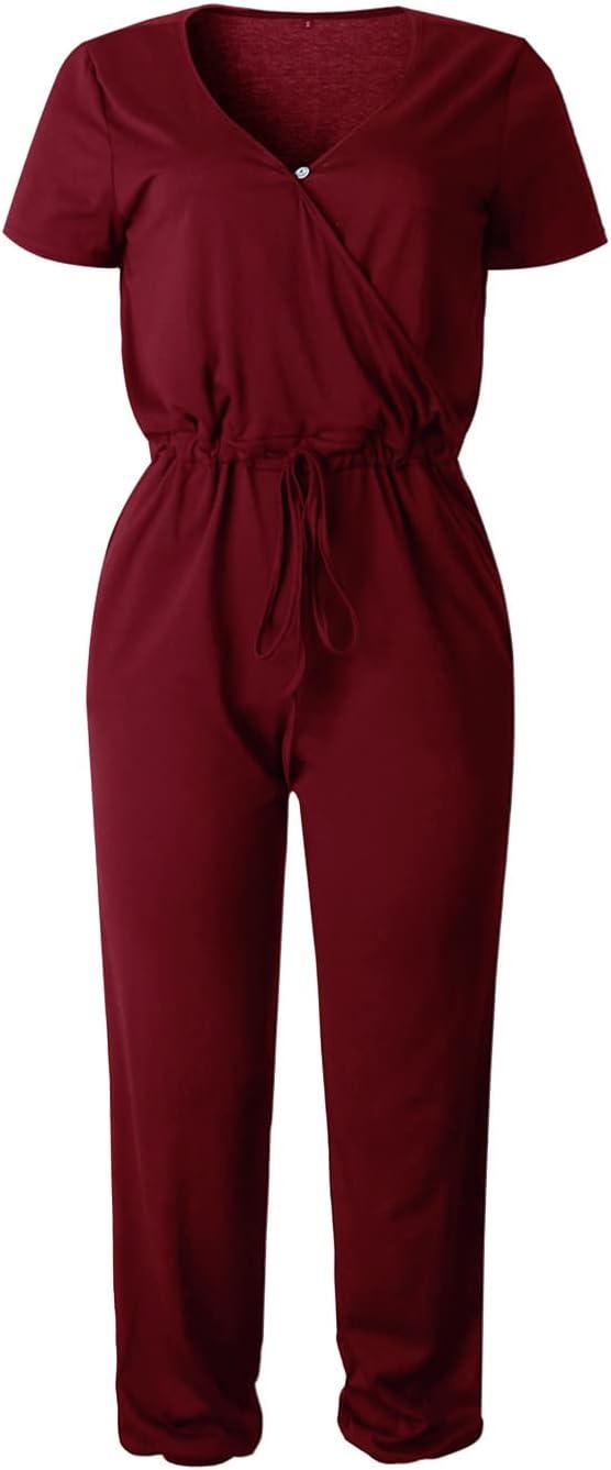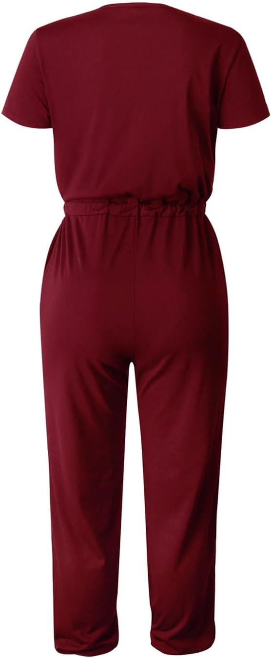 PRETTYGARDEN Jumpsuits for Women Dressy 2025 Summer Casual Short Sleeve Romper Spring Airport Beach Vacation Travel Outfits(Wine Red)