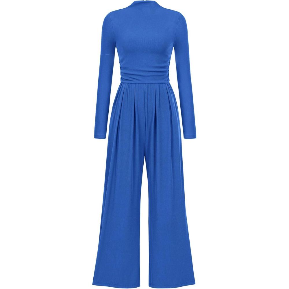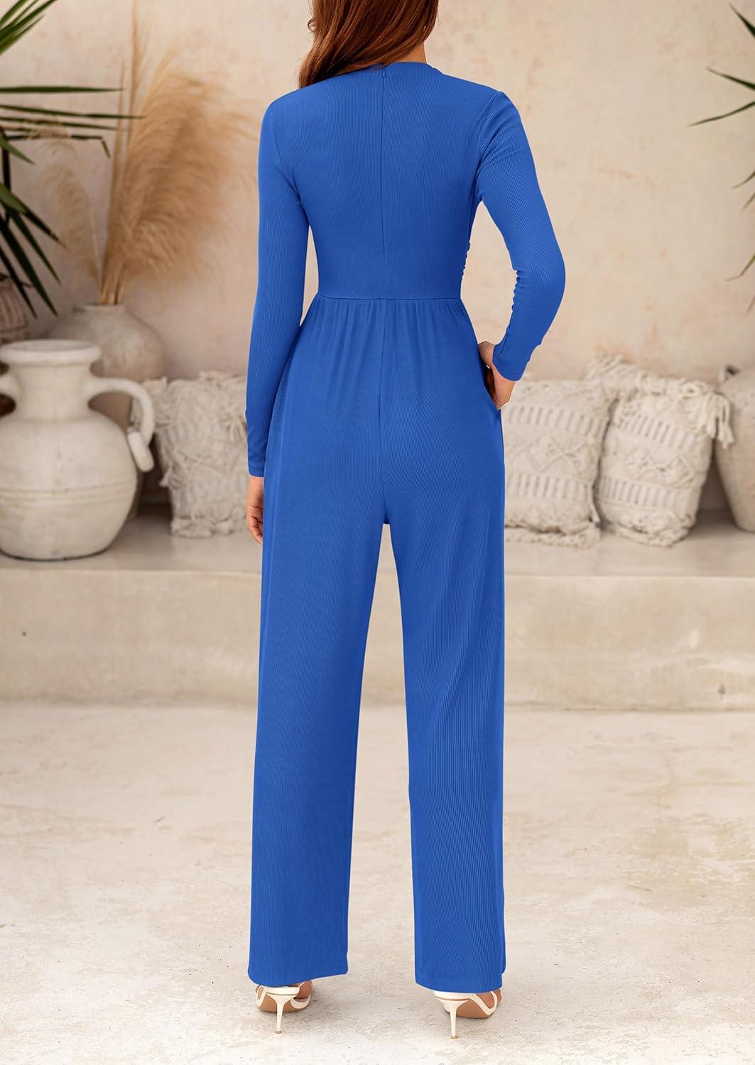 PRETTYGARDEN Jumpsuits For Women Dressy Fall Fashion Clothing 2025 Long Sleeve Mock Neck Date Night Rompers Business Outfits(Blue)
