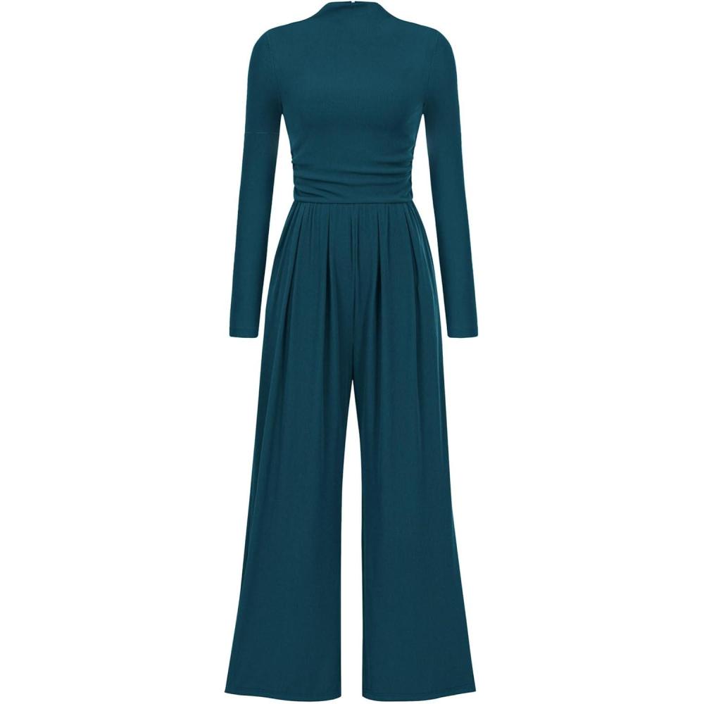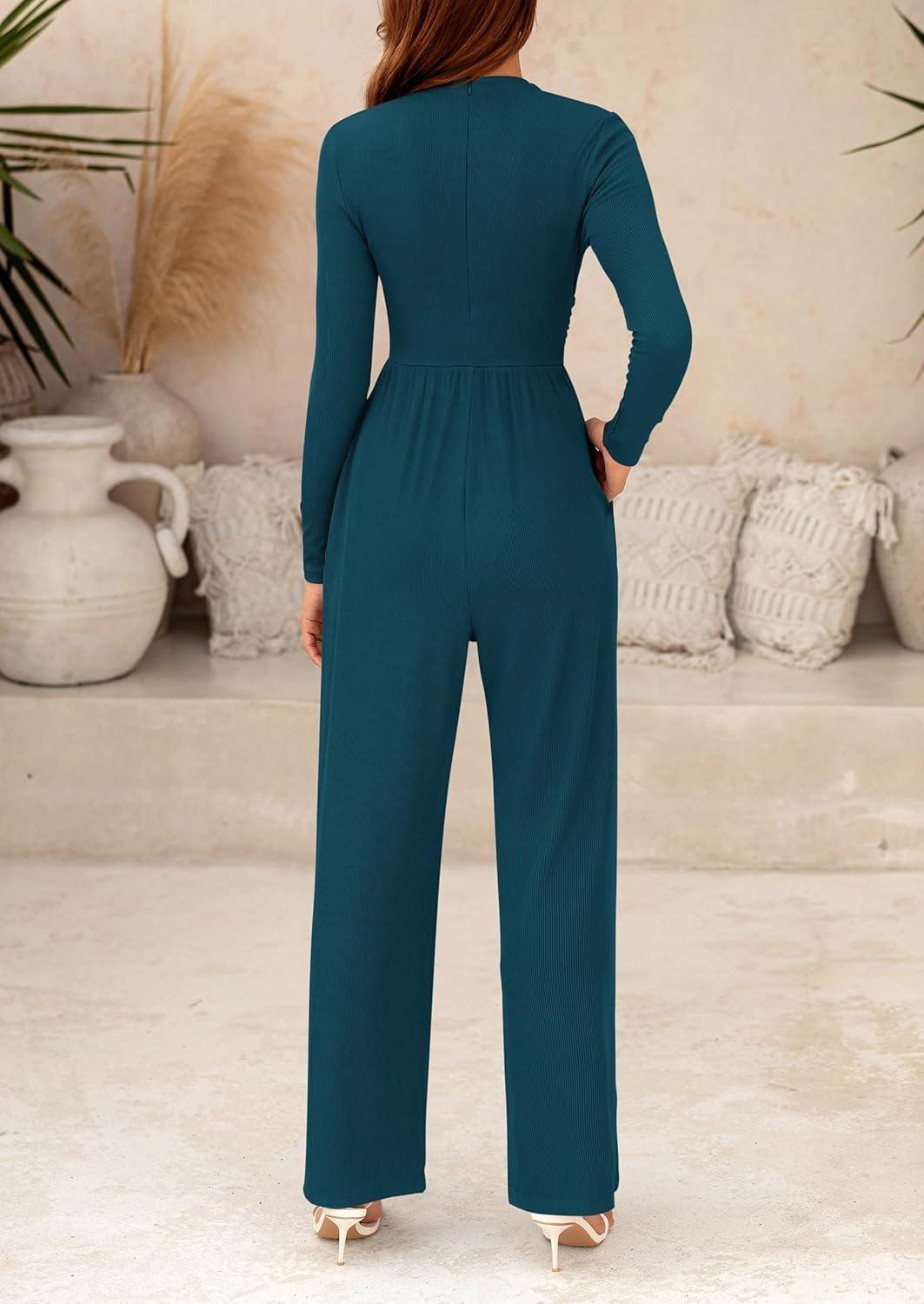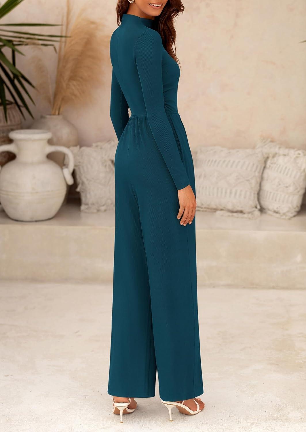 PRETTYGARDEN Jumpsuits For Women Dressy Fall Fashion Clothing 2025 Long Sleeve Mock Neck Date Night Rompers Business Outfits(Lake Blue)