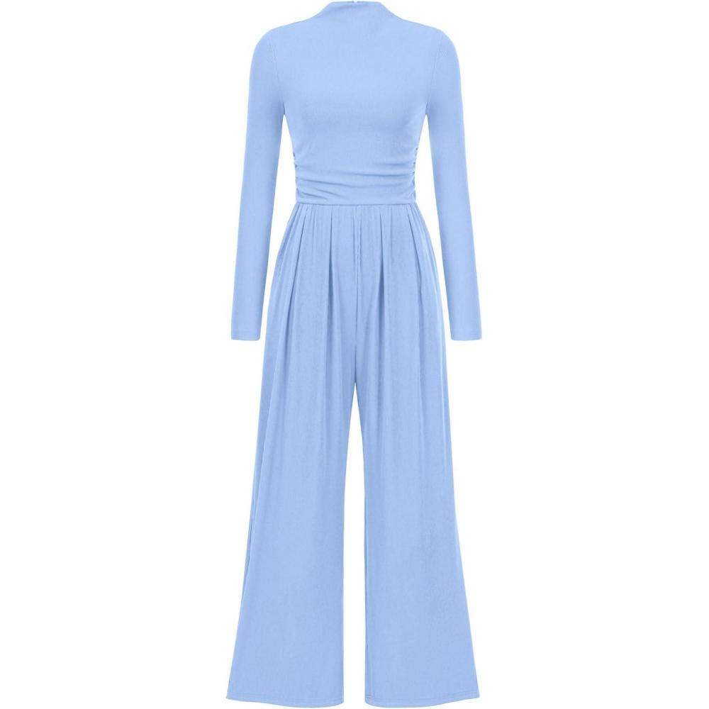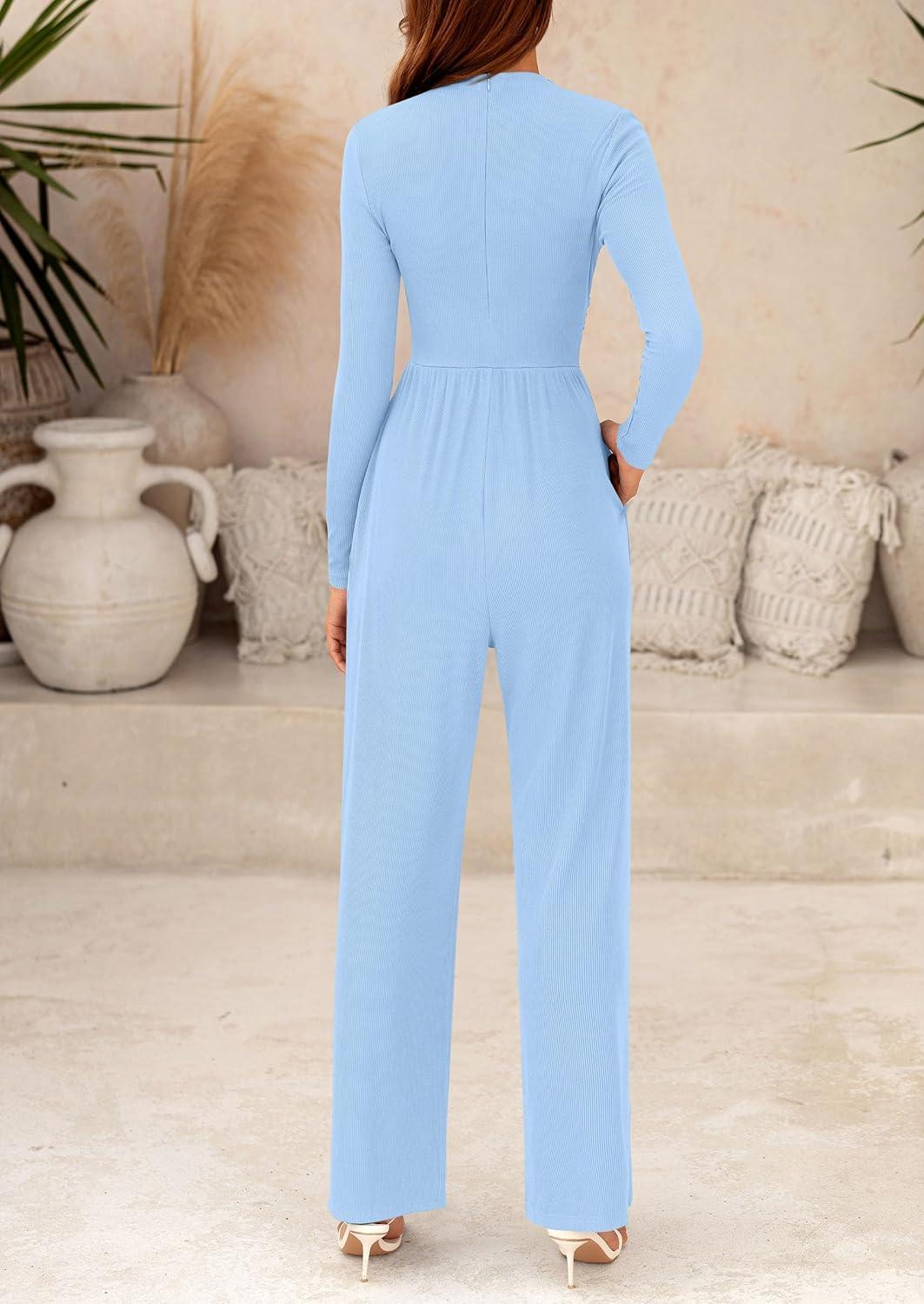 PRETTYGARDEN Jumpsuits For Women Dressy Fall Fashion Clothing 2025 Long Sleeve Mock Neck Date Night Rompers Business Outfits(Light Blue)