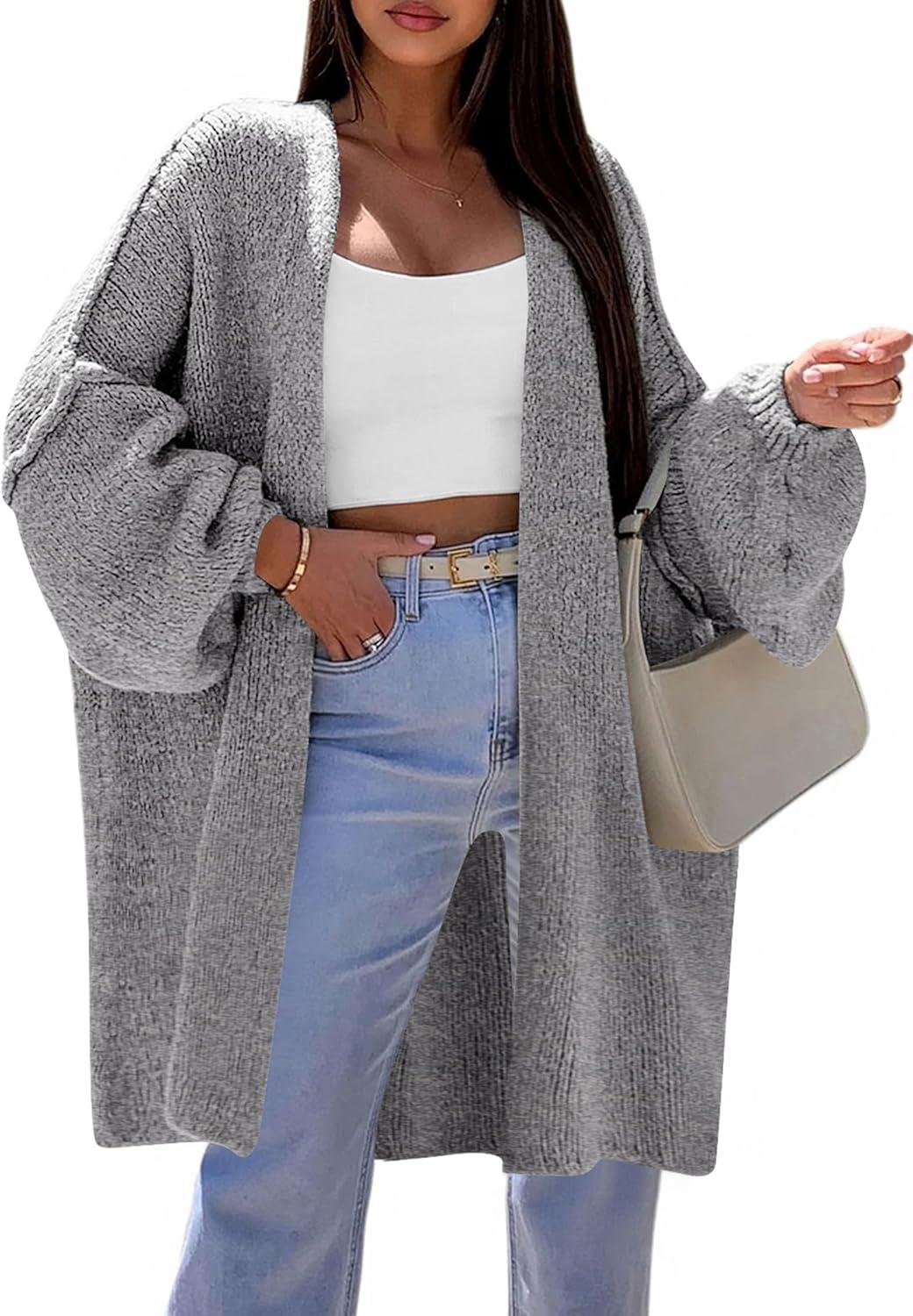 PRETTYGARDEN Long Cardigan Sweaters for Women Trendy Fall 2025 Oversized Knit Sweater Jacket Coats Winter Fashion Clothing(Dark Grey)