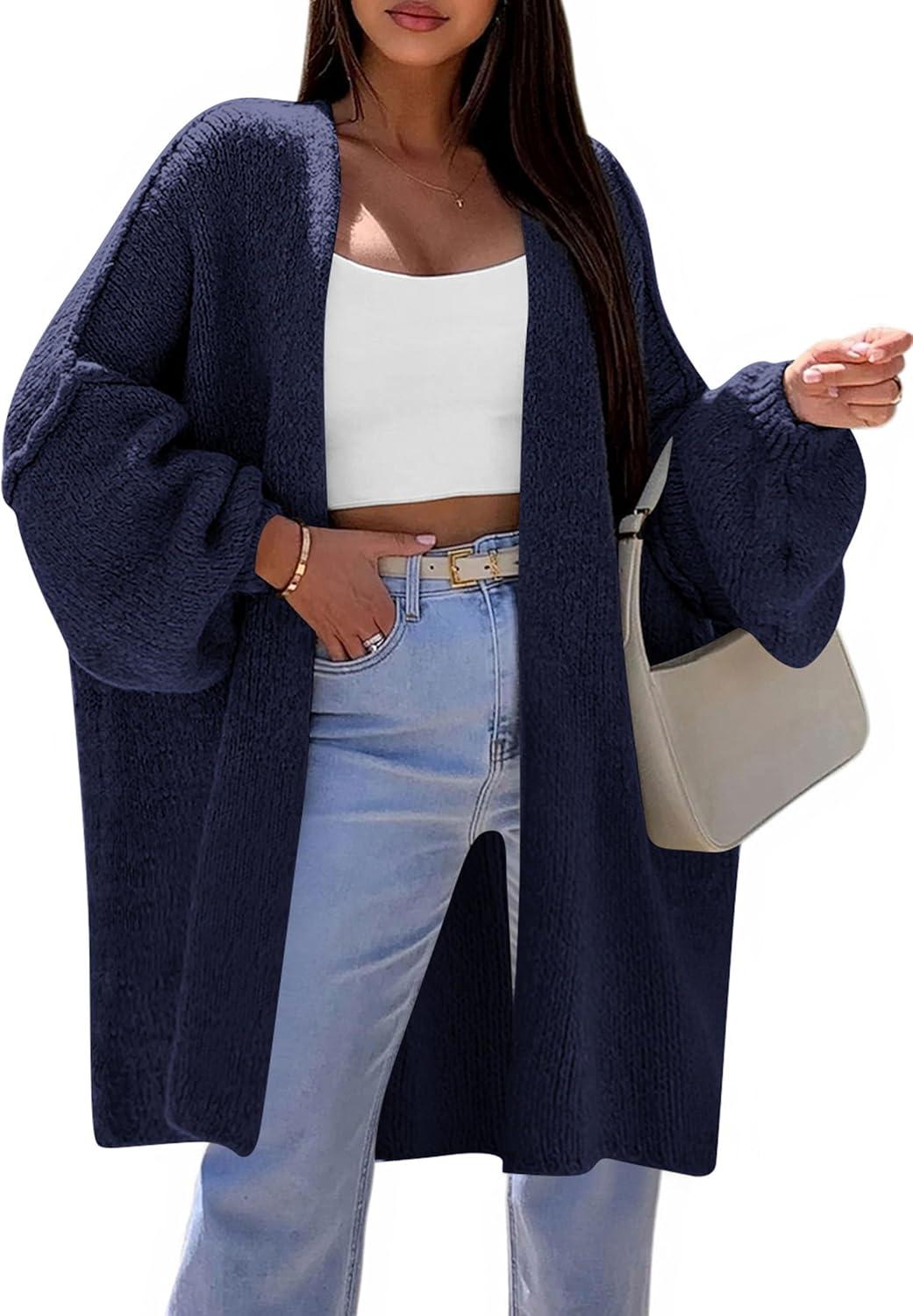 PRETTYGARDEN Long Cardigan Sweaters for Women Trendy Fall 2025 Oversized Knit Sweater Jacket Coats Winter Fashion Clothing(Dark Royal Blue)