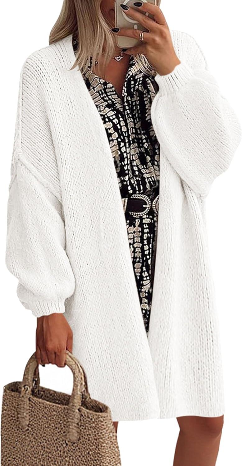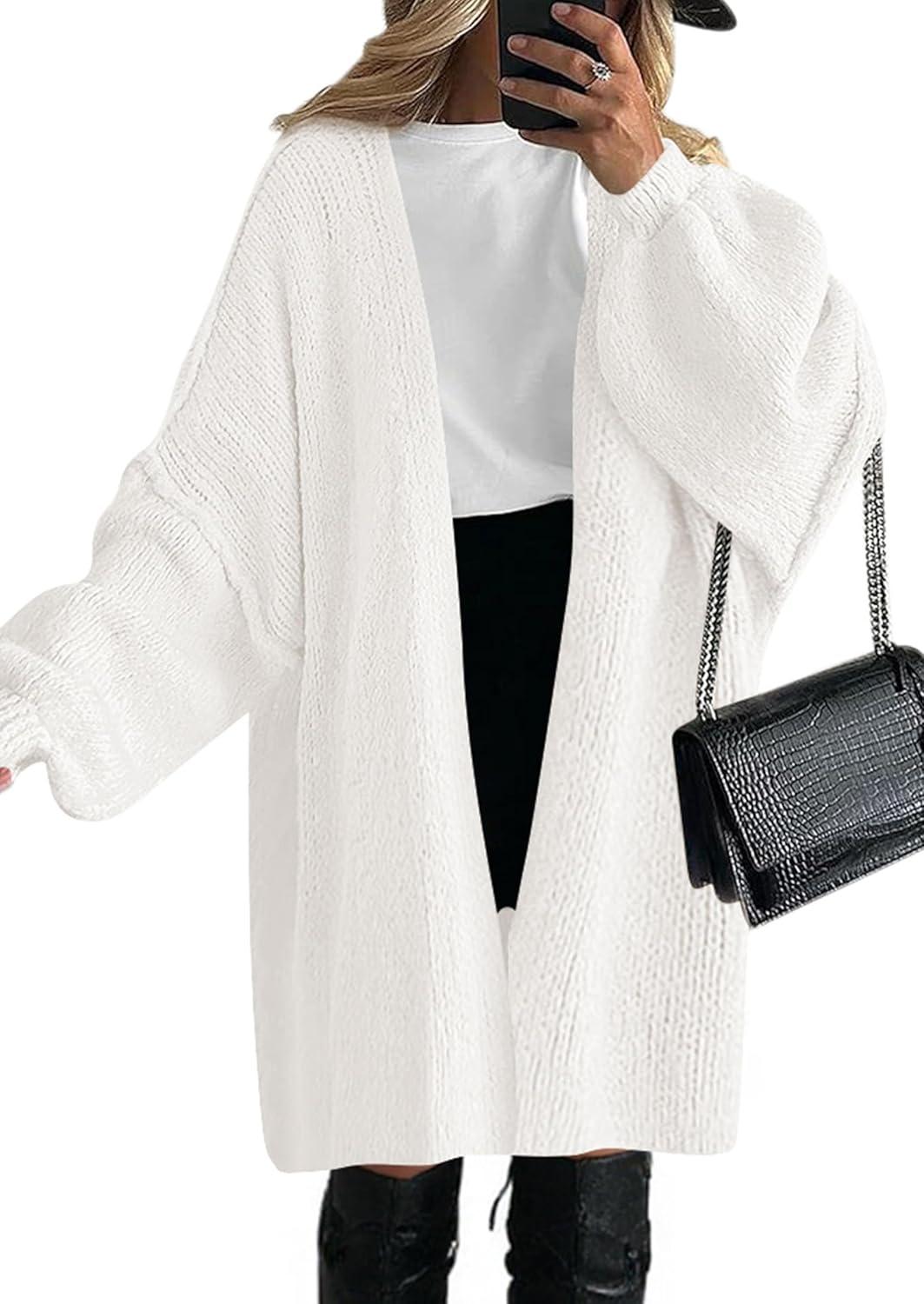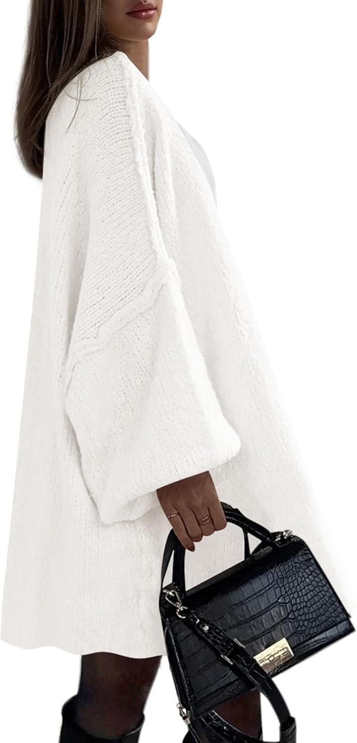 PRETTYGARDEN Long Cardigan Sweaters for Women Trendy Fall 2025 Oversized Knit Sweater Jacket Coats Winter Fashion Clothing(White)