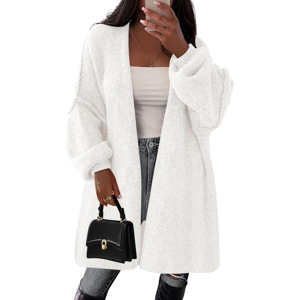 imagePRETTYGARDEN Long Cardigan Sweaters for Women Trendy Fall 2025 Oversized Knit Sweater Jacket Coats Winter Fashion ClothingWhite