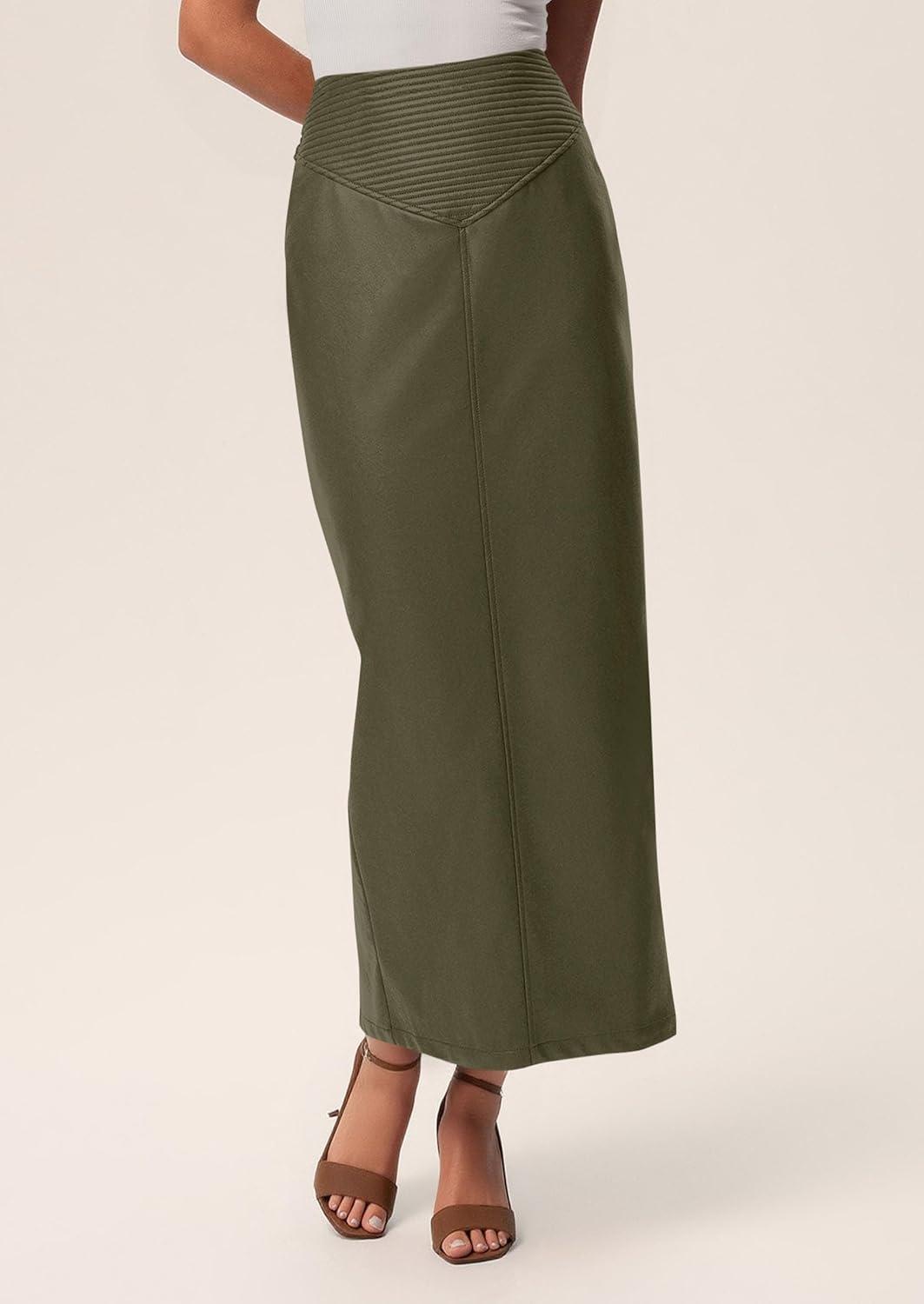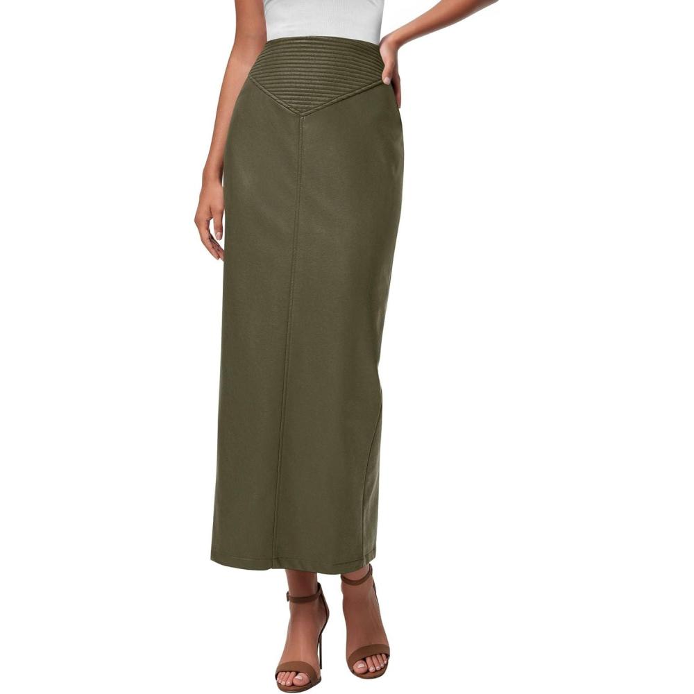 PRETTYGARDEN Long Skirts for Women 2025 Fall Fashion Clothing Faux Leather High Waist Dressy Casual Slit Pencil Maxi Skirt(Army Green)